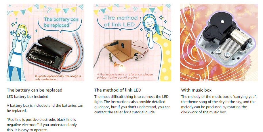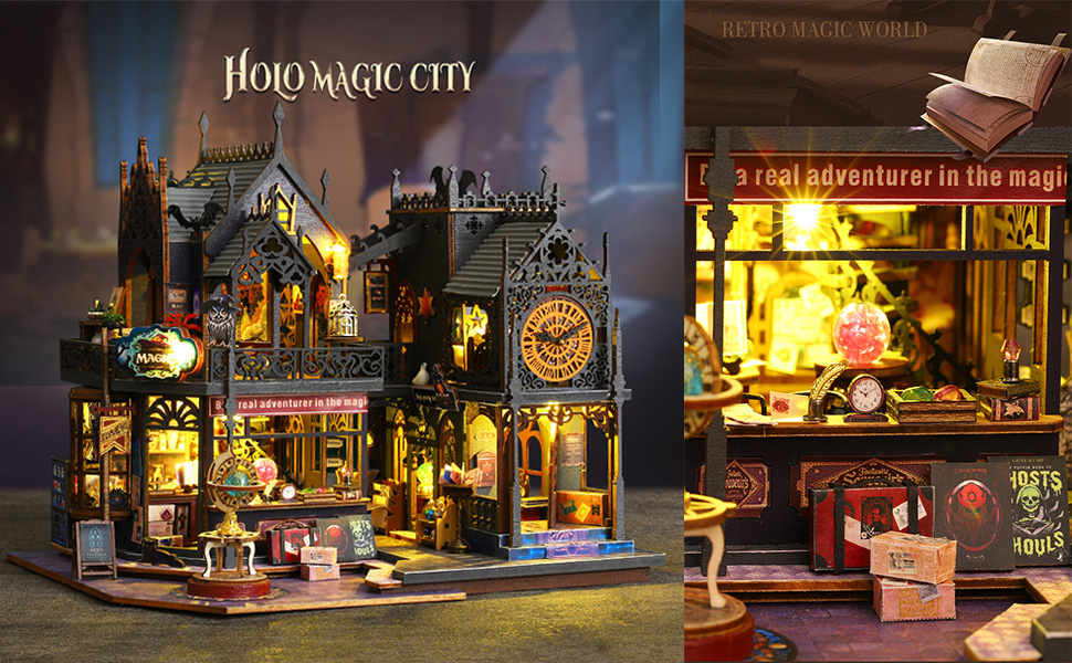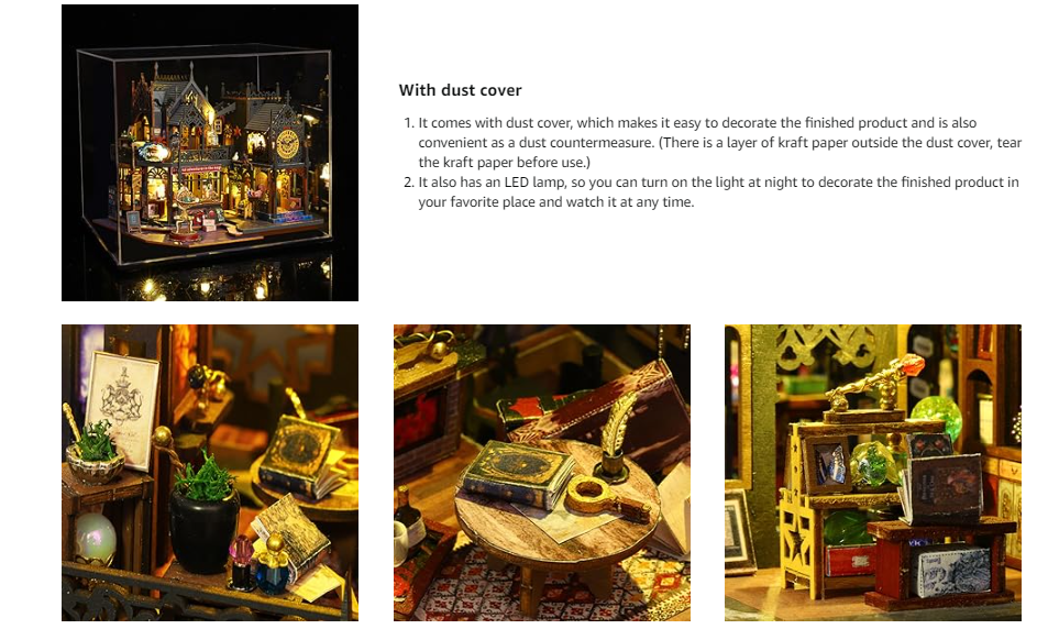 3D puzzle szett, barkácsolás miniatűr babaház, porvédő huzattal és zenedobozsal, felnőtt ajándéknak, WALALLA, többszínű