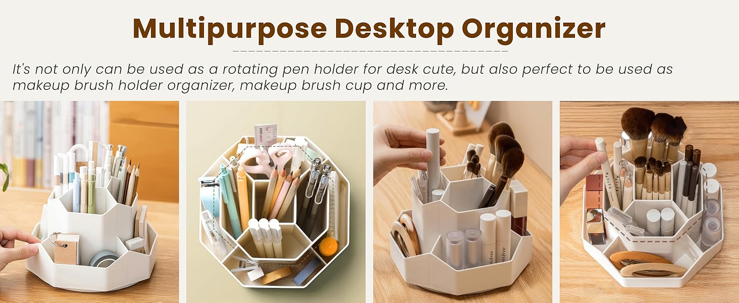 Asztali tolltartó, 9 rekesz, 360 fokban forgatható asztali rendszerező, Vaxiuja, Irodai, Iskolai, Otthoni, Bézs
