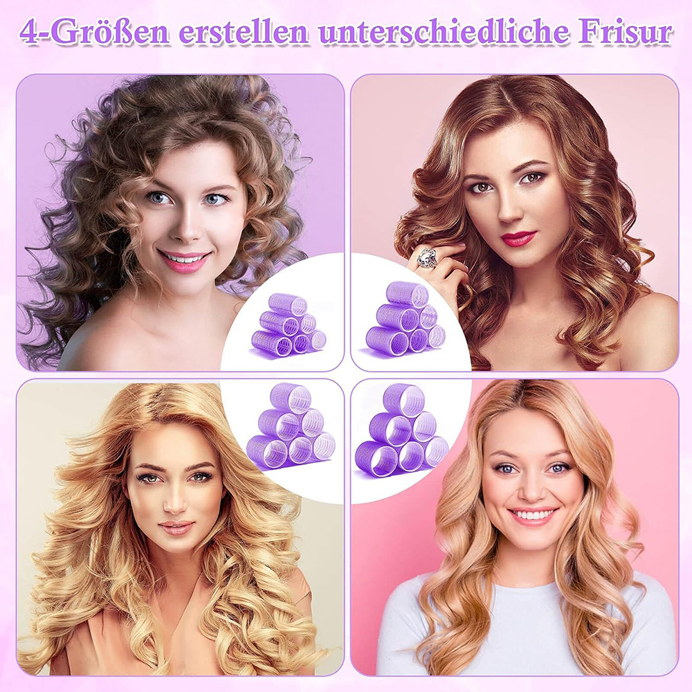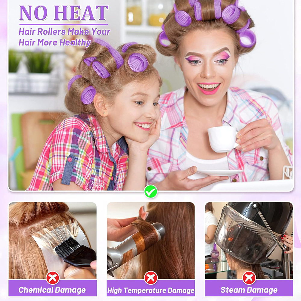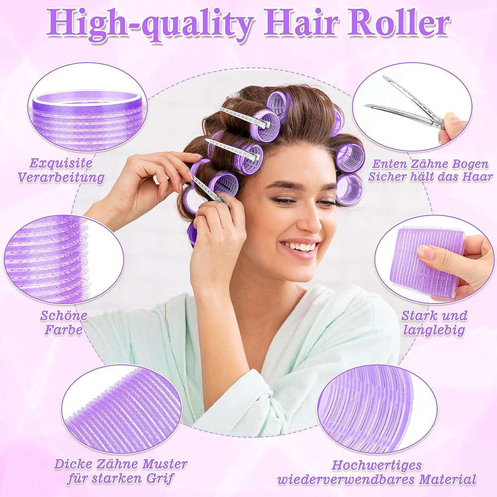 BOMSTOM hajcsavaró szett, 49 részes, rozsdamentes klipsszel rögzíthető, 6,4cm, lila