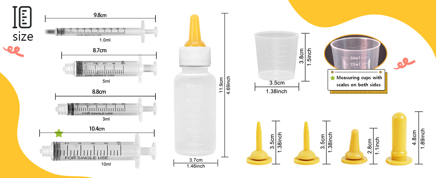 Etetőkészlet, Axroad Mall, Állatetető készlet etetőpalackkal, Fecskendőkkel és Mellbimbókkal, Könnyen használható, Szilikon, Átlátszó