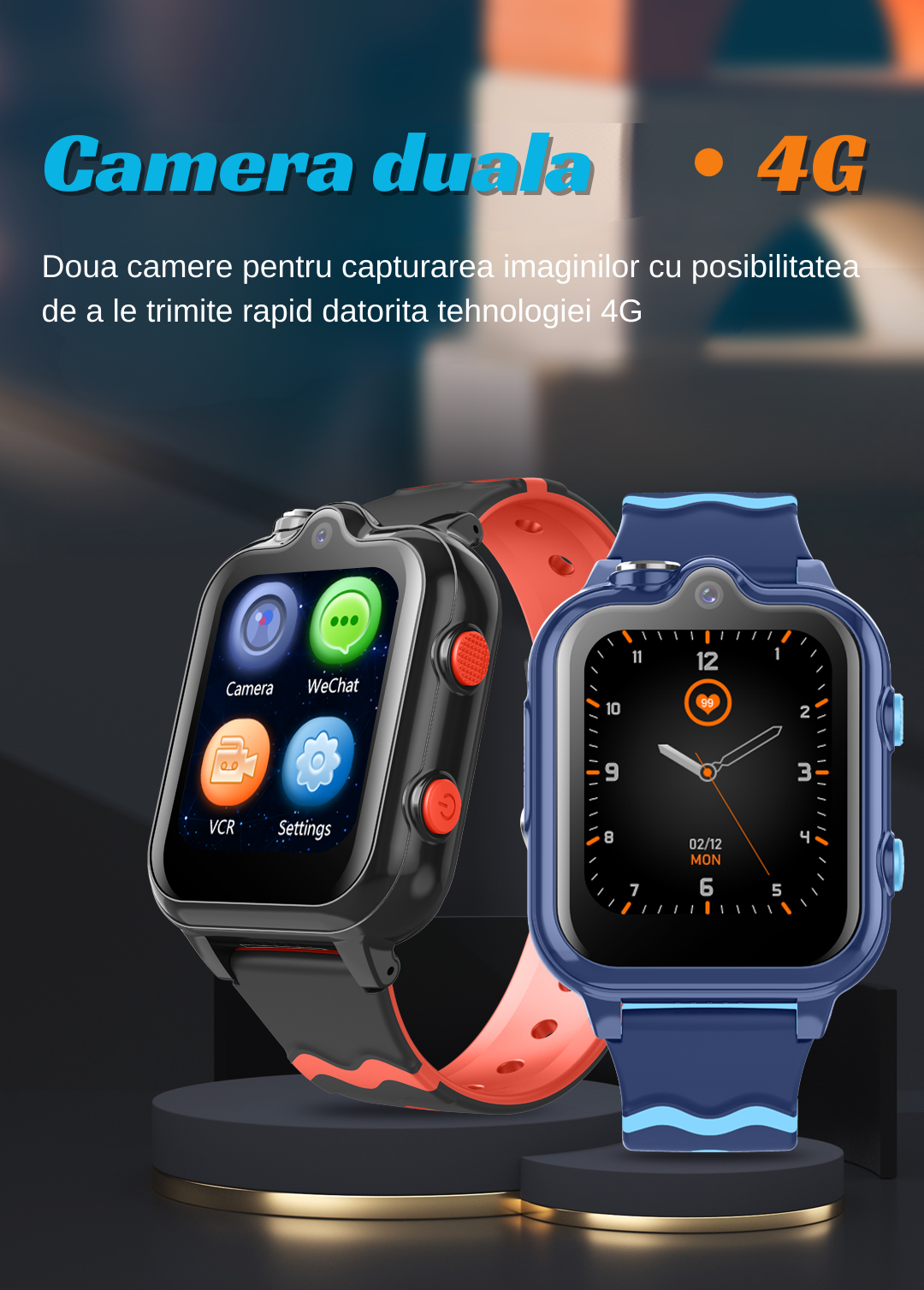 Gyerek GPS okosóra helymeghatározással és telefonnal KT18, AMYMAT 1,7 hüvelykes RETINA, 4G LTE, videohívás, dupla HD kamera, Wi-Fi, vízálló IP67, telefon, bluetooth, SOS, kémfelügyelet, kék