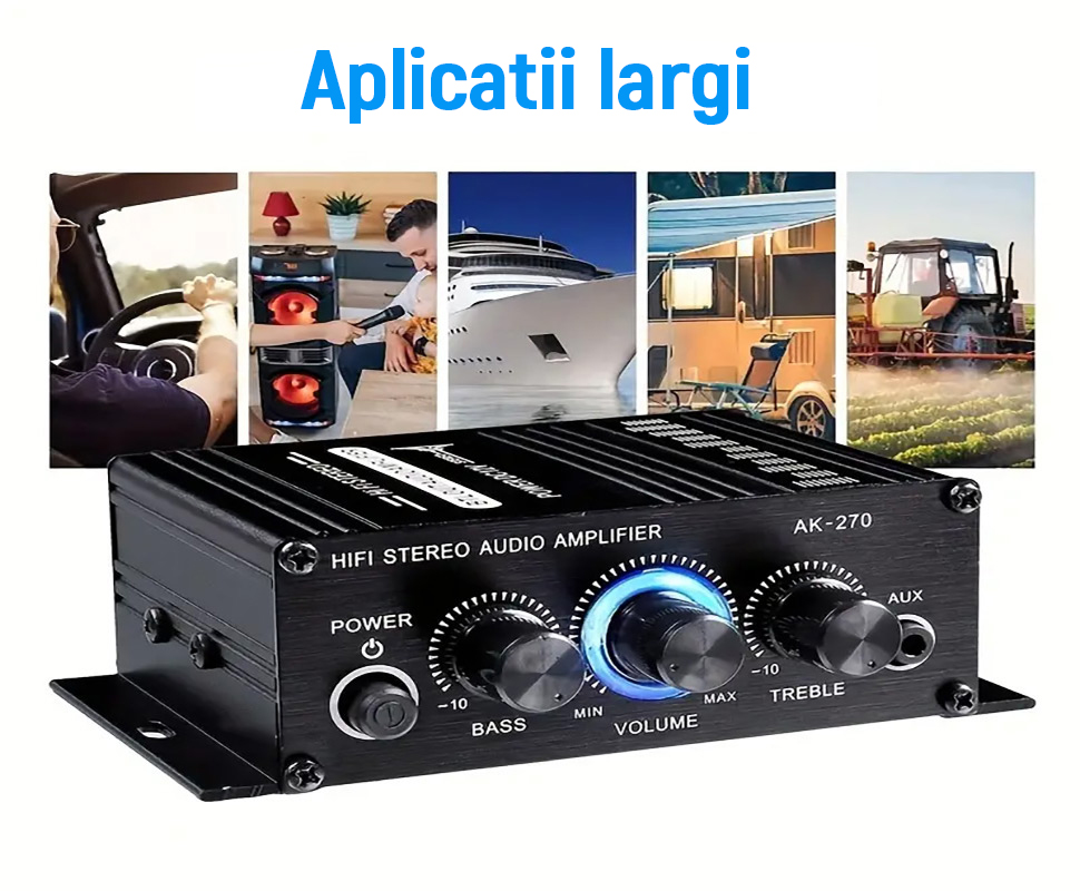 Hangerősítő tápadapterrel, 20 W x 2, 12 V 3A tápegységgel, Plug and Play, 2 csatorna, alumíniumötvözet ház, könnyen használható, OUYLAF, fekete