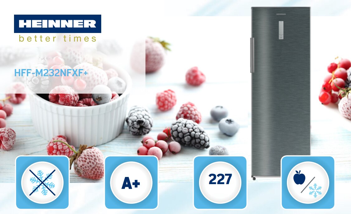 Heinner HFF-M232NFXF+ Fagyasztószekrény, 227 l, M:172.2 cm, Full No Frost, Hűtő funkció, 7 fiók, Érintőkijelző, Elektronikus vezérlés, A+ energiaosztály, Antracit