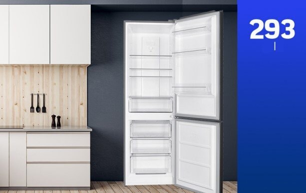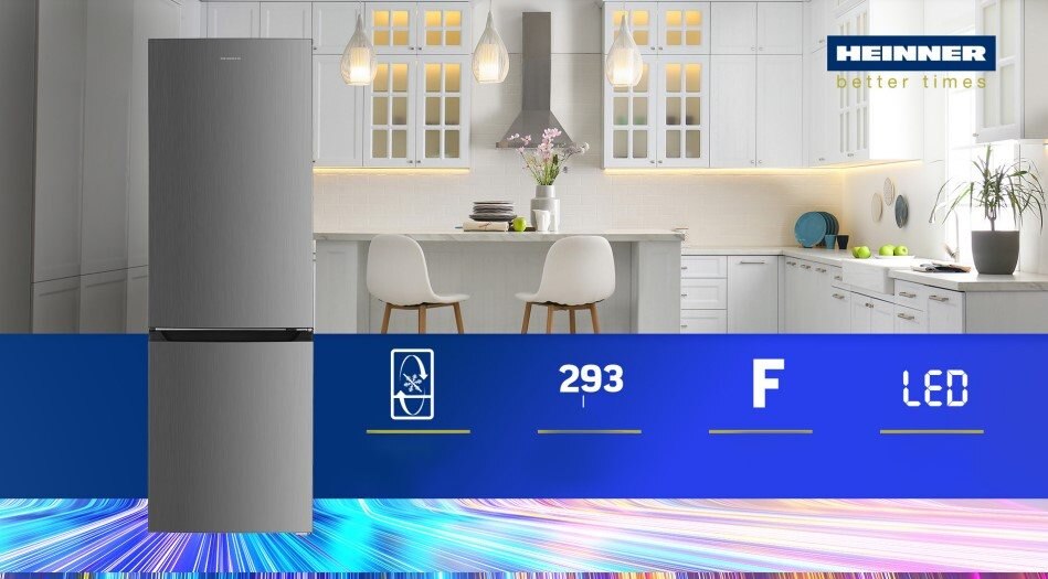 Heinner HCNF-HM293XF+ Kombinált hűtőszekrény, 293l, M: 186, LED világítás, No Frost, F energiaosztály, Inox