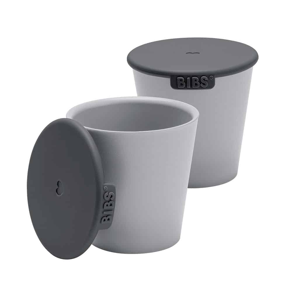 2 db-os BIBS pohárkészlet, fedővel, 7x7 cm, 125 ml, szürke, gyerekeknek