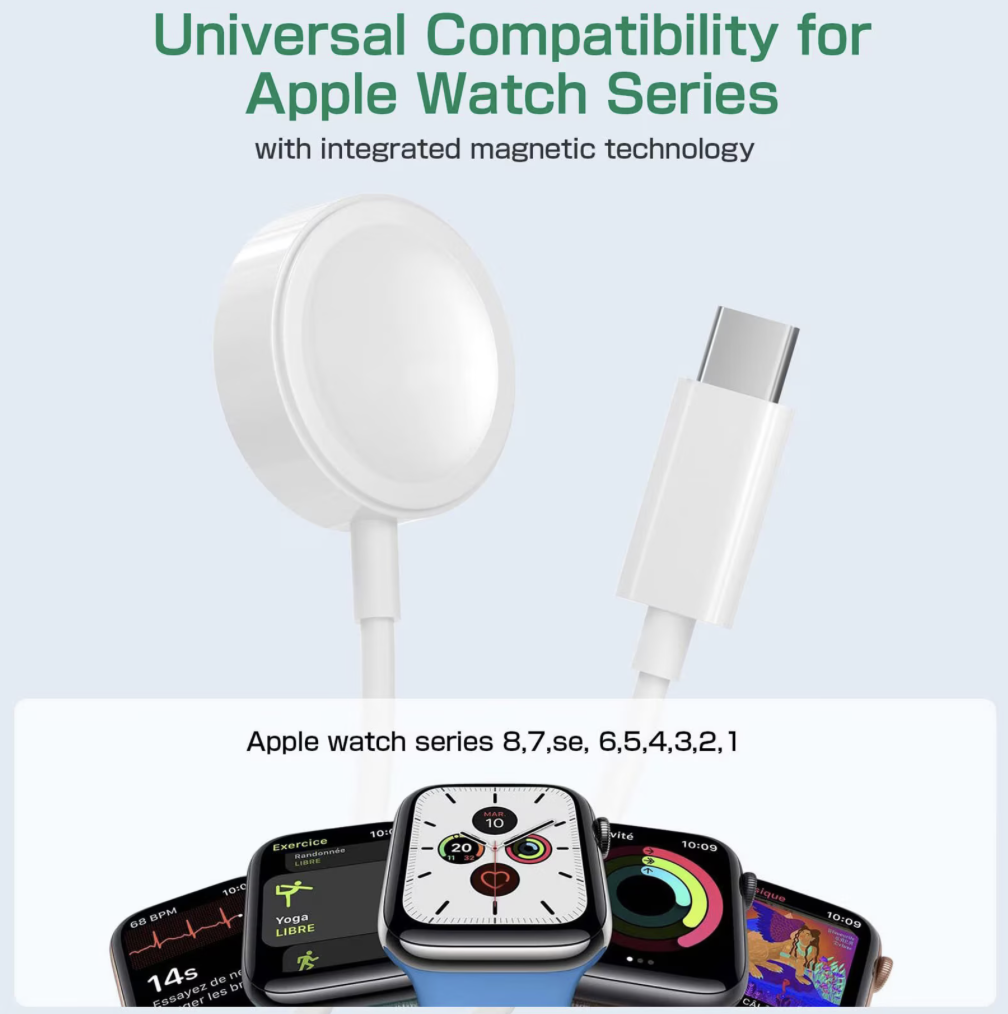Apple Watch-al kompatibilis töltőkábel, mágneses, USB-C, fehér, 1 m