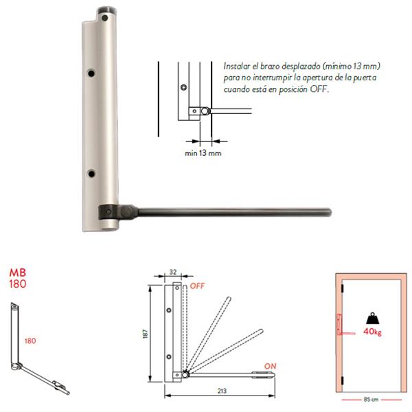 Automatikus ajtócsukó, JUSTOR MB 180, rugóval, 40 kg-ig, ezüst