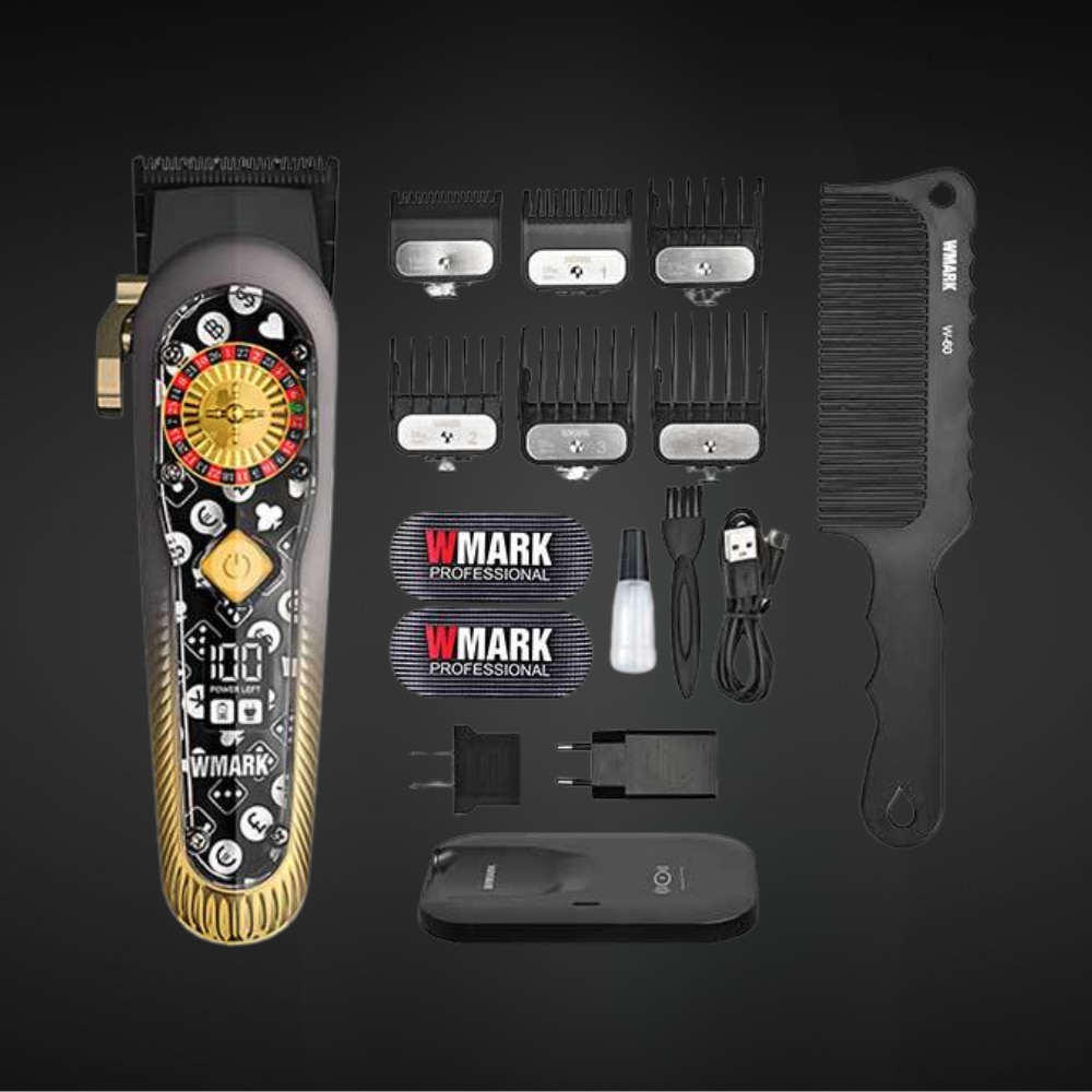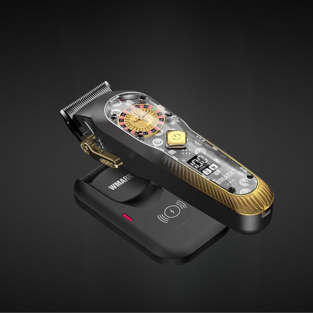 BIRAI ROULETTE Professzionális hajvágó, 9000 fordulat/perc motor, DLC titán pengék, vezeték nélküli és USB töltés, LED kijelző, vízálló, 300 perc üzemidő, ergonómikus, ideális fodrászokhoz és szalonokhoz, fekete