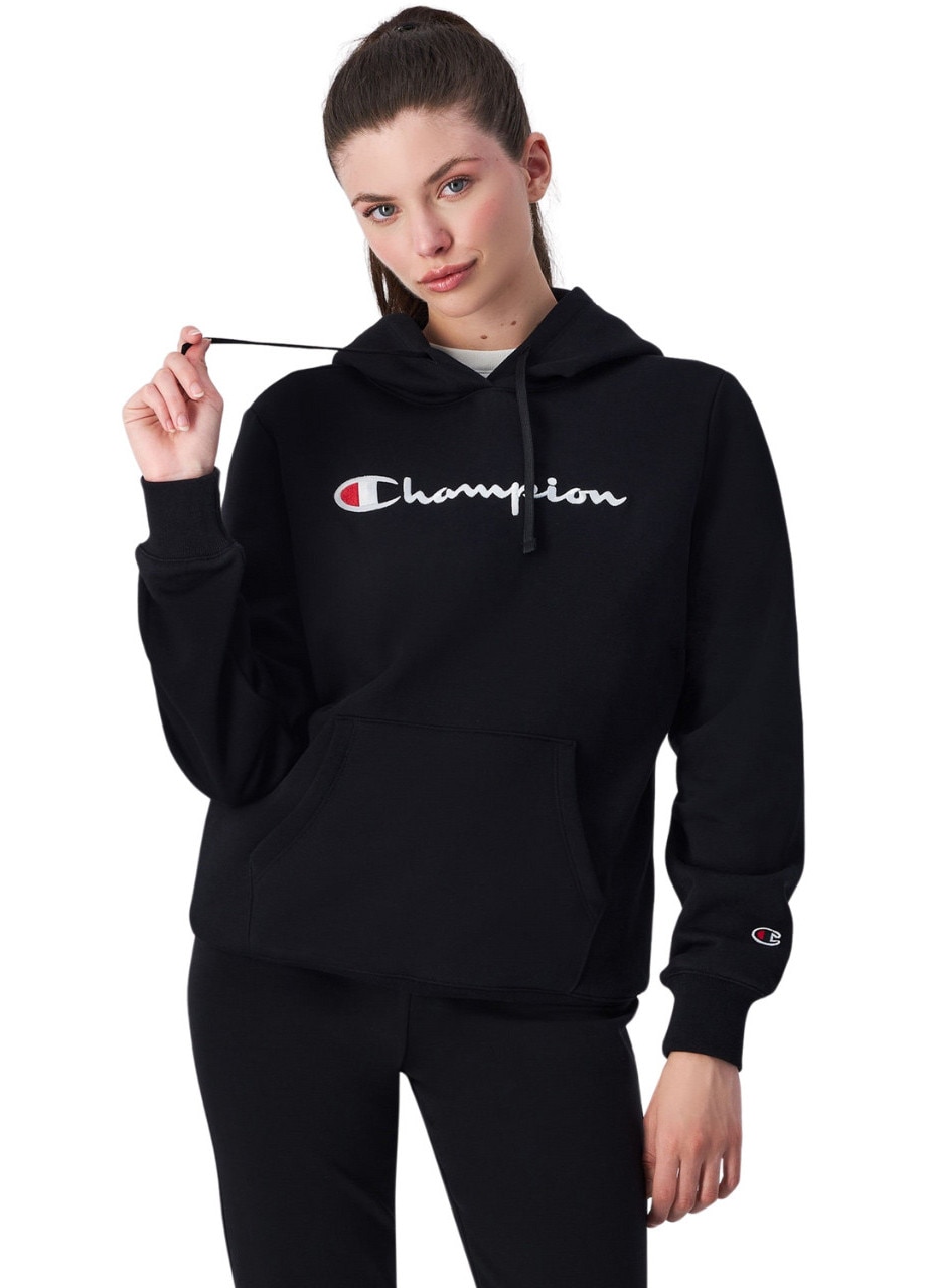 Champion - női pulóver, fekete, testhezálló szabású, polár béléssel, kapucnis szett