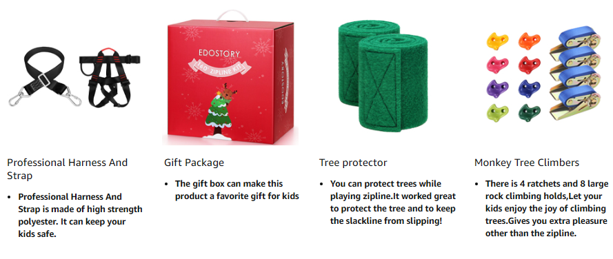 Cipzárkészlet a kerthez, WALALLA, 38 m, acélkábel, 4 db-os fáramászó készlet, 150 kg, kék