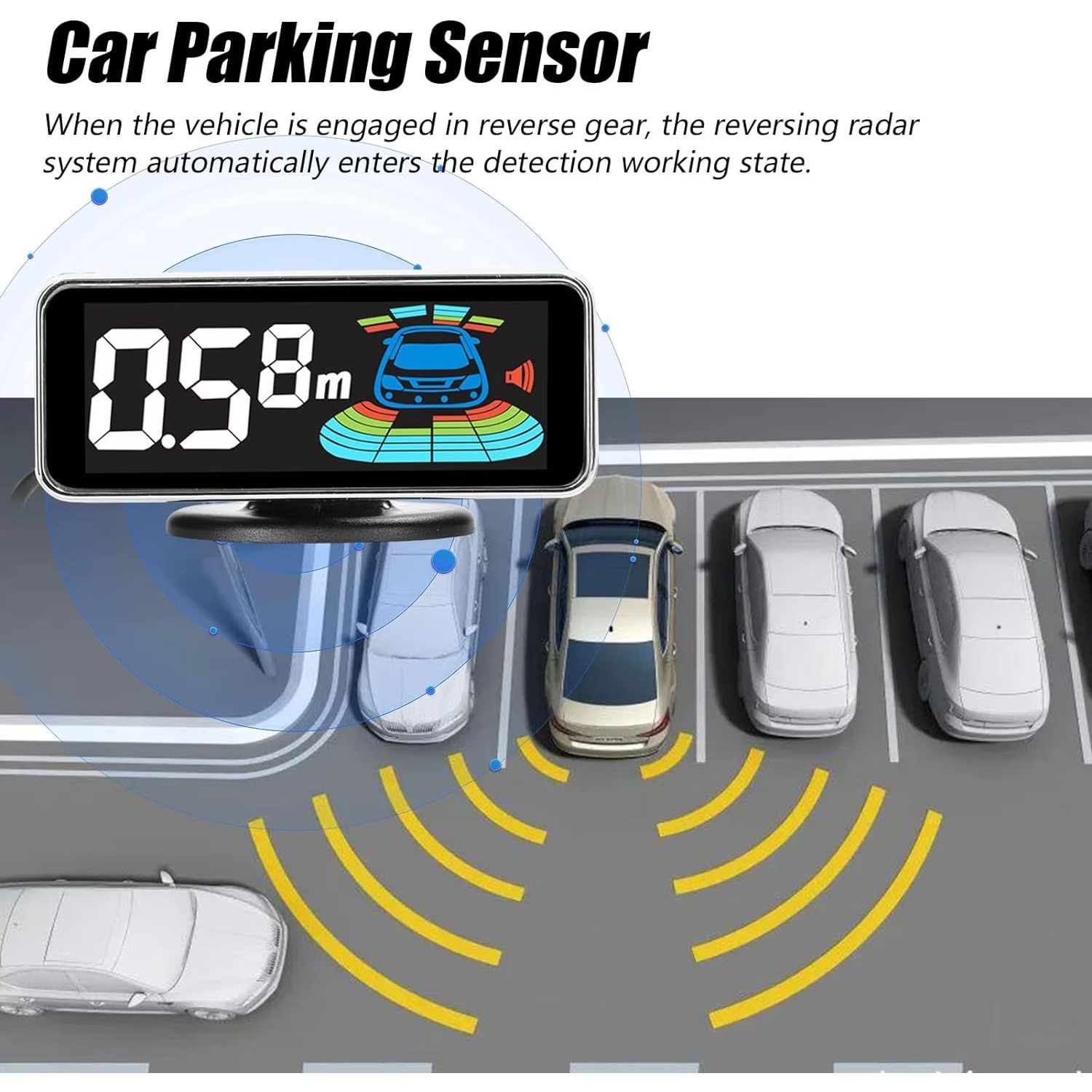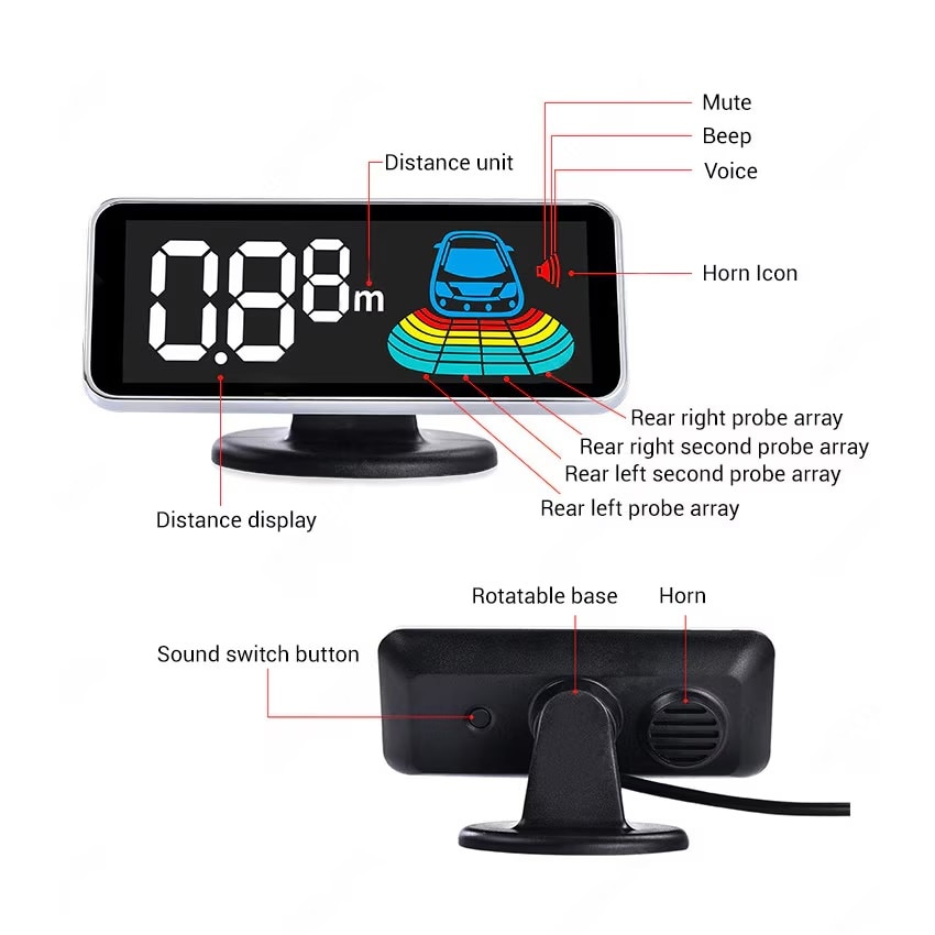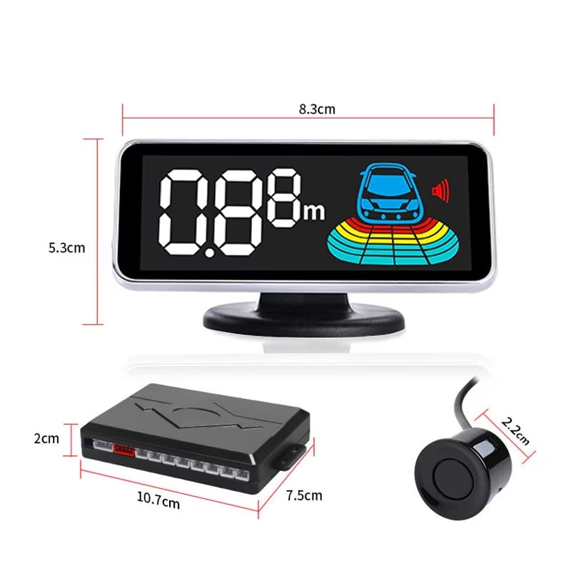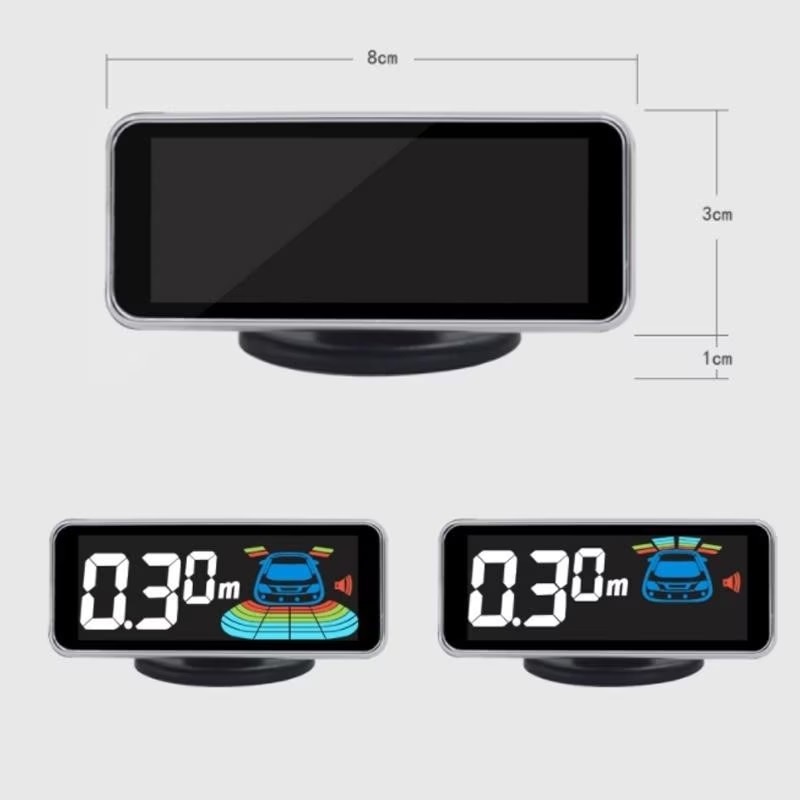 Első és hátsó tolatóradar, világos szürke színű, 8 érzékelővel, LCD kijelzővel és hangjelzéssel