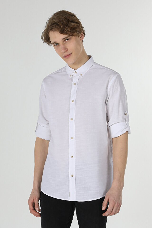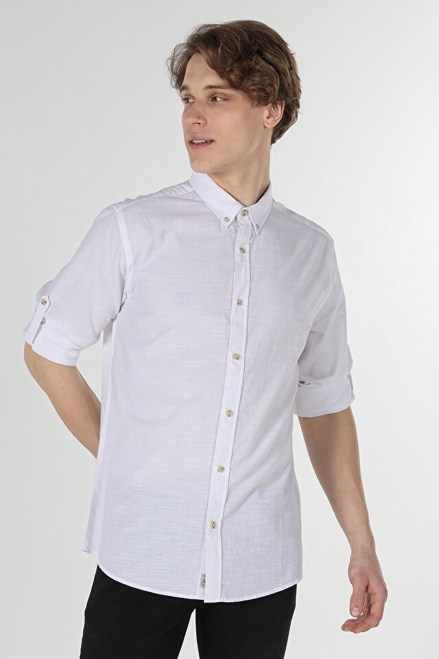 COLIN'S - Fehér normál szabású férfi hosszú ujjú ing, White