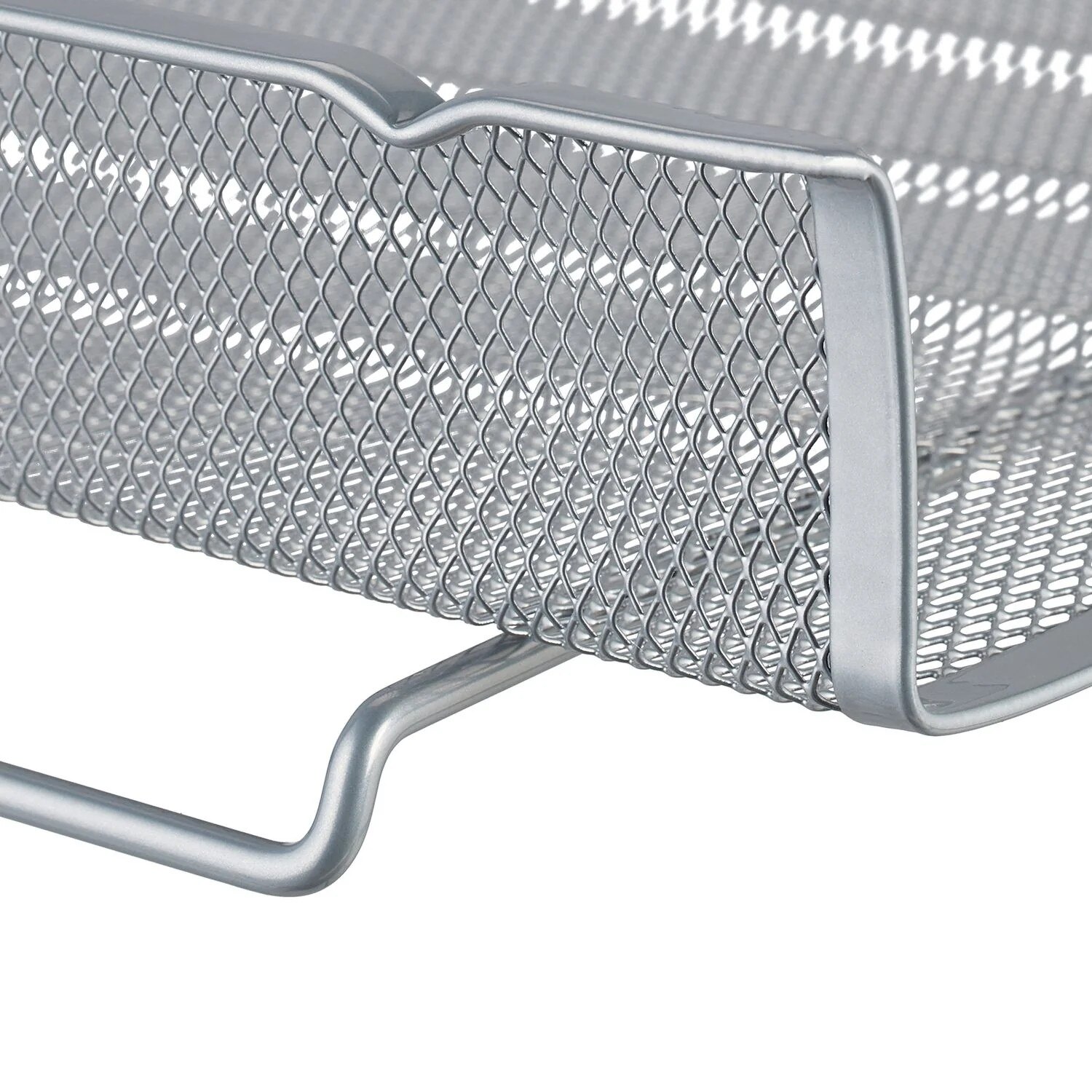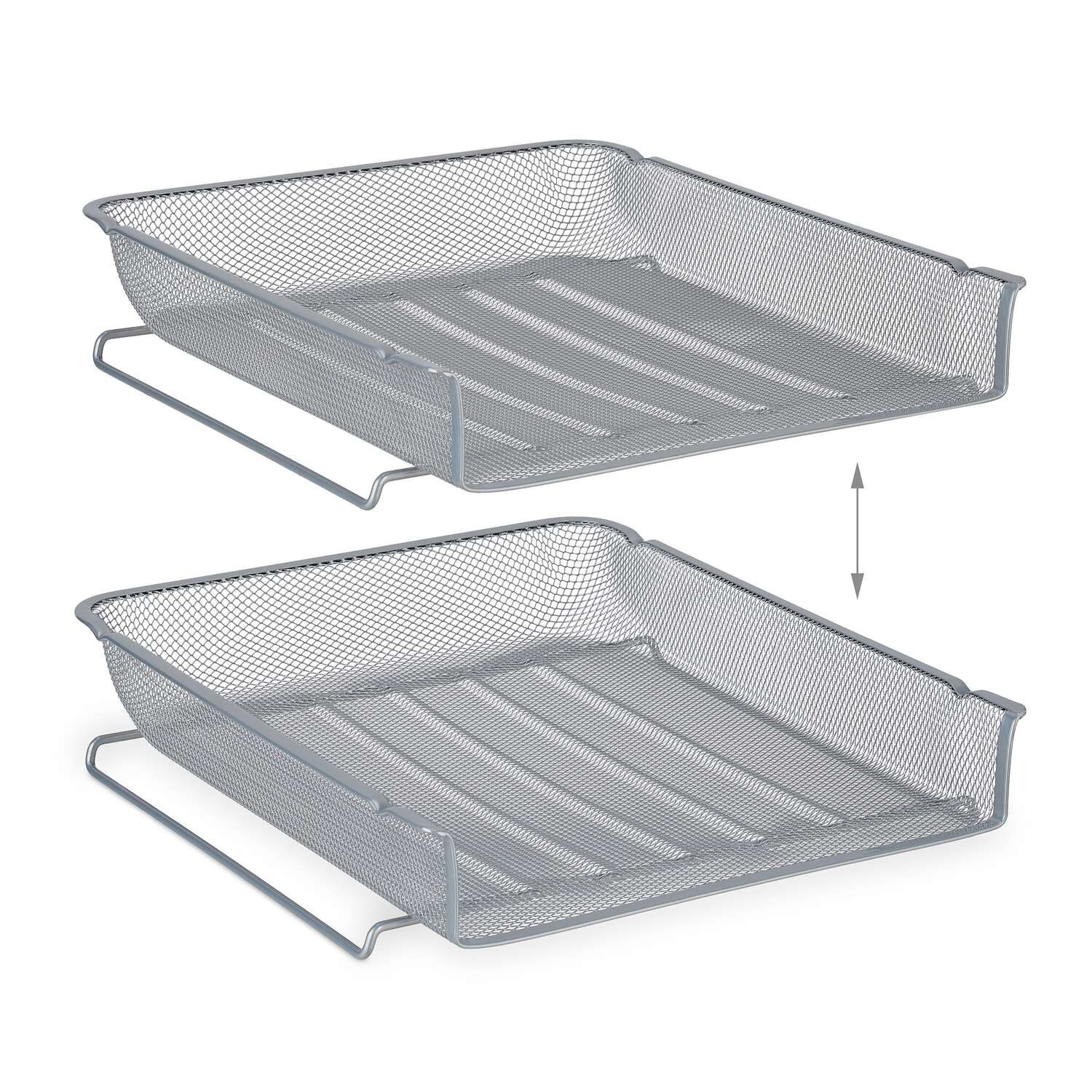 Ezzel a praktikus dokumentumtartóval áttekinthetően és rendezetten tárolhatja leveleit, számláit és A4-es méretű iratait. A levélszekrény egymásra rakható kialakításának köszönhetően a fontos dokumentumok és papírok több polcon is tárolhatók egymás fölött, így helyet takaríthat meg és kéznél tarthatja őket. A robusztus és divatos hálós szövet a modern irodai tálcát időtlen vonzerővé teszi a munkahelyen. A polc felületén lévő hullámok megkönnyítik a papírlapok megfogását.