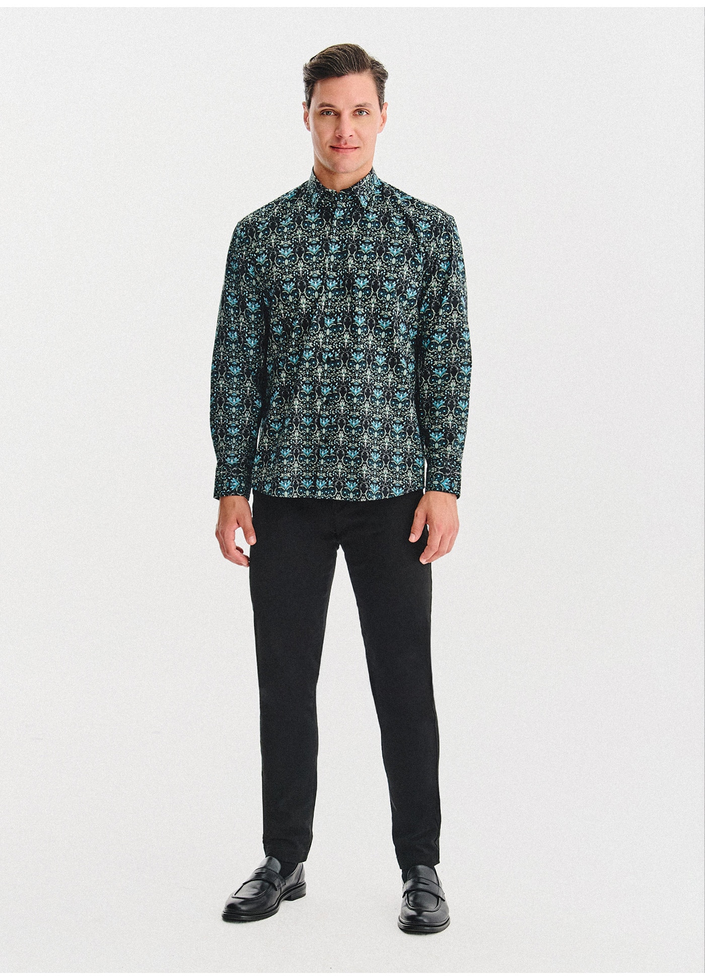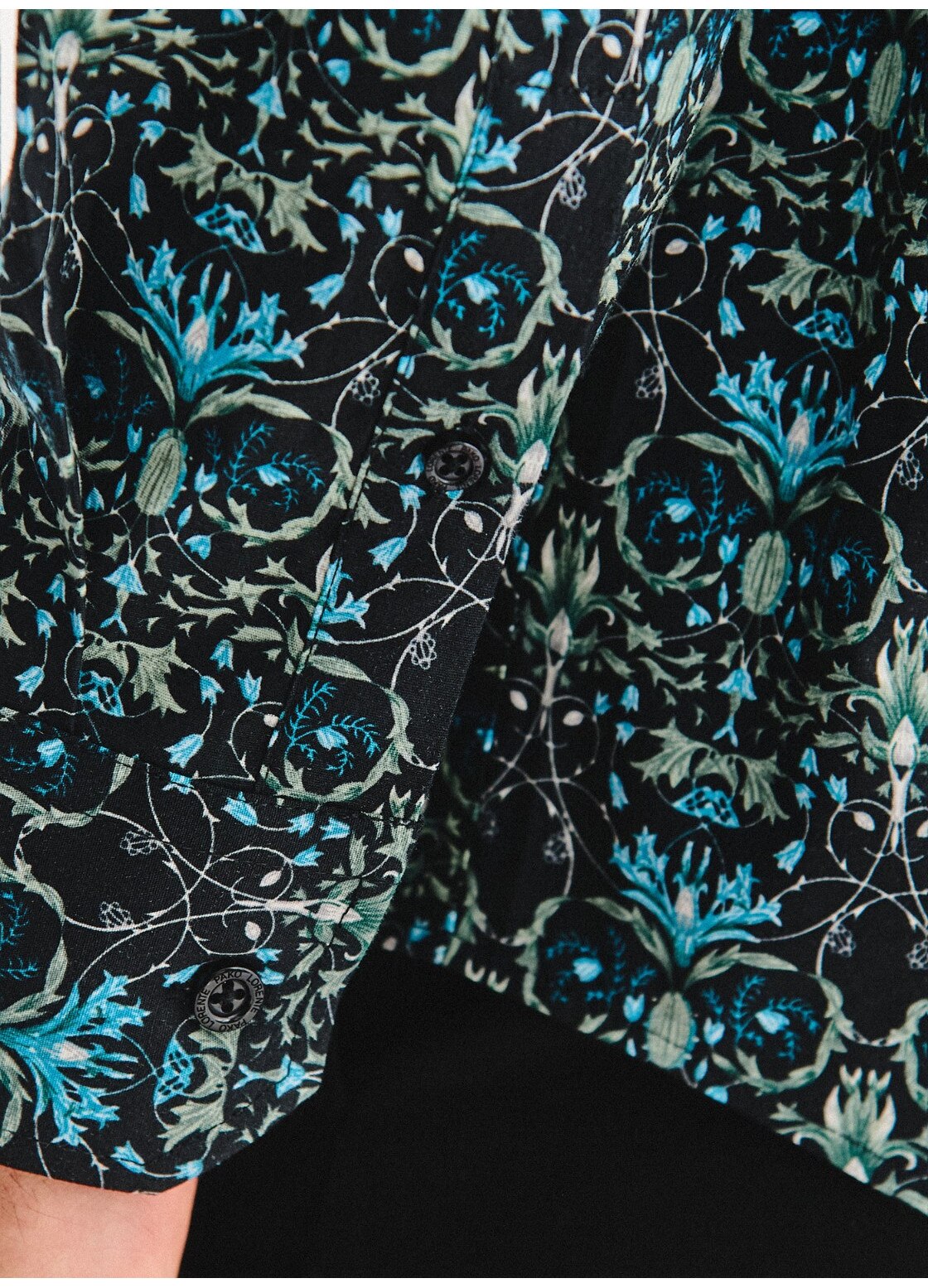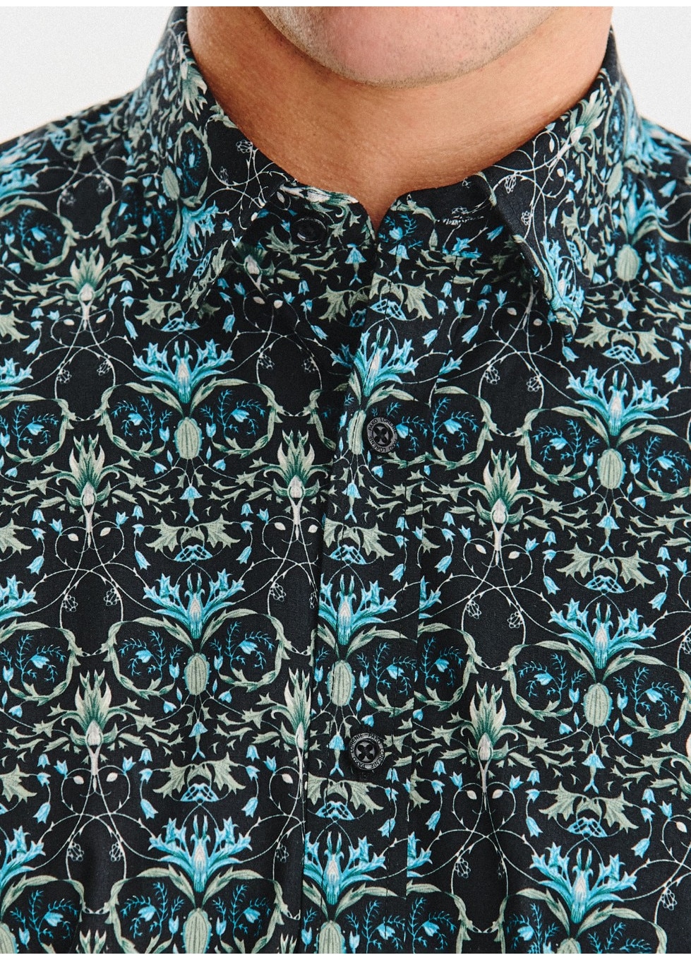 Férfi fekete ing türkiz virágmintával, Regular Fit, Pako Lorente, Fekete