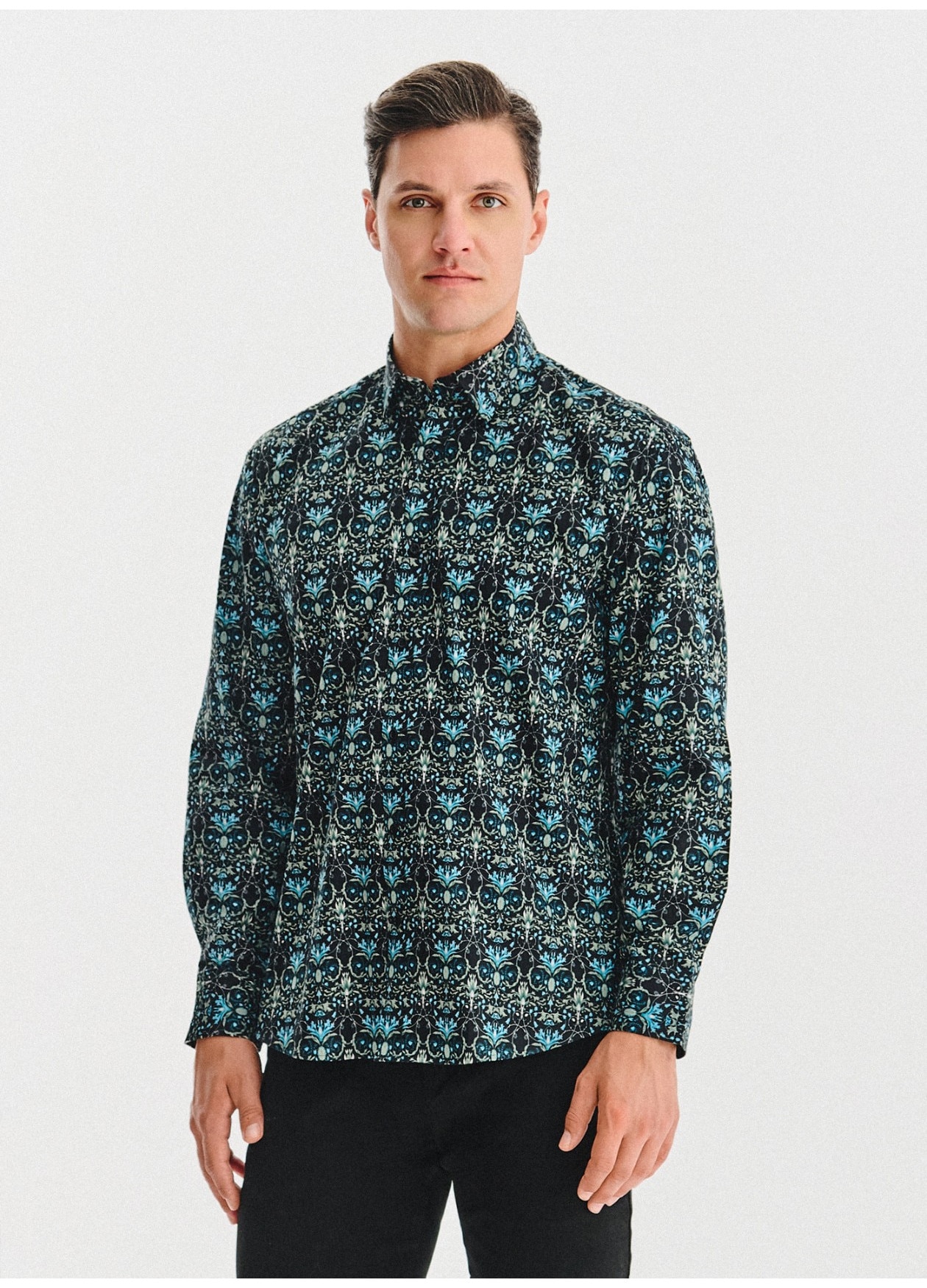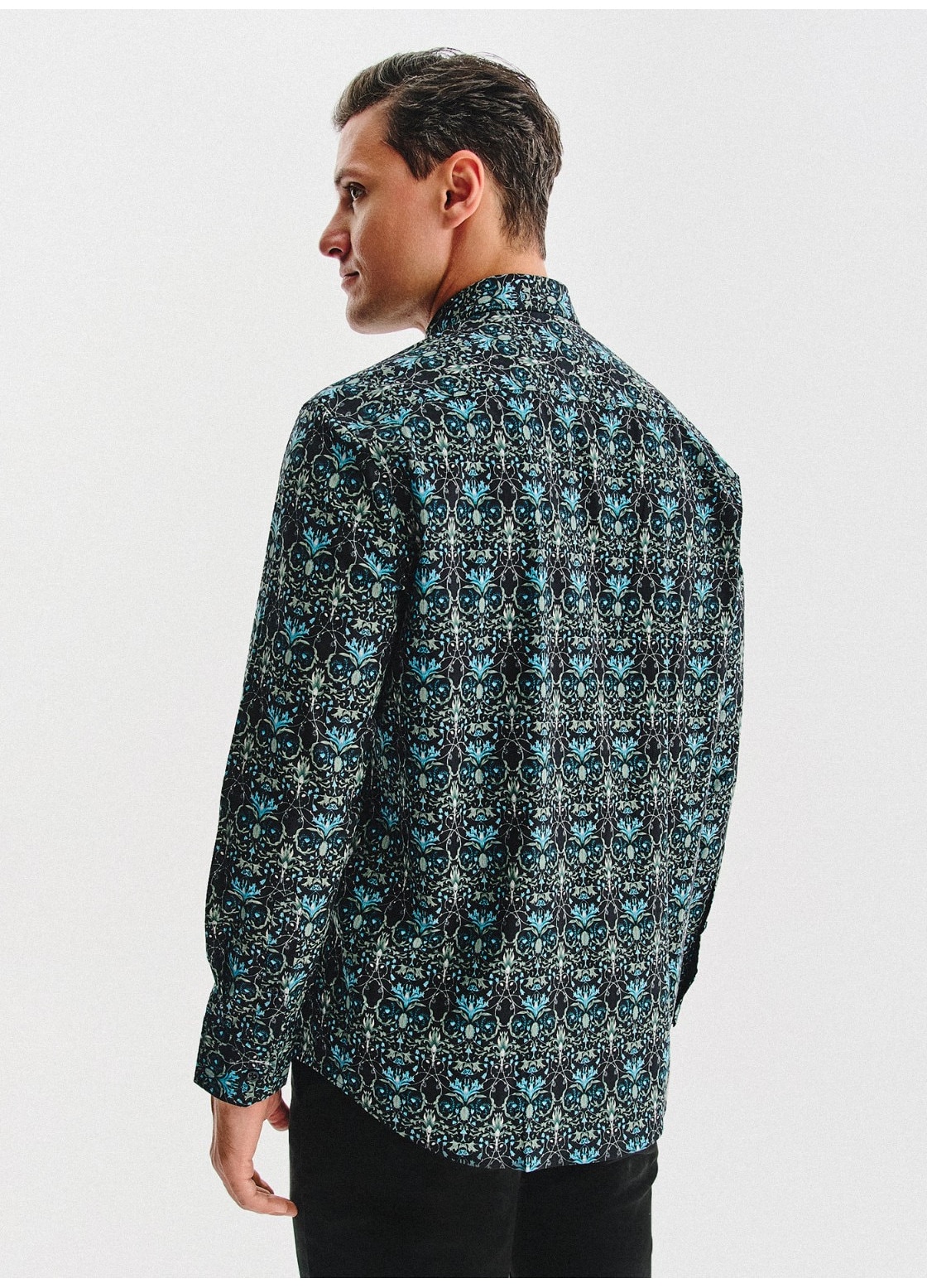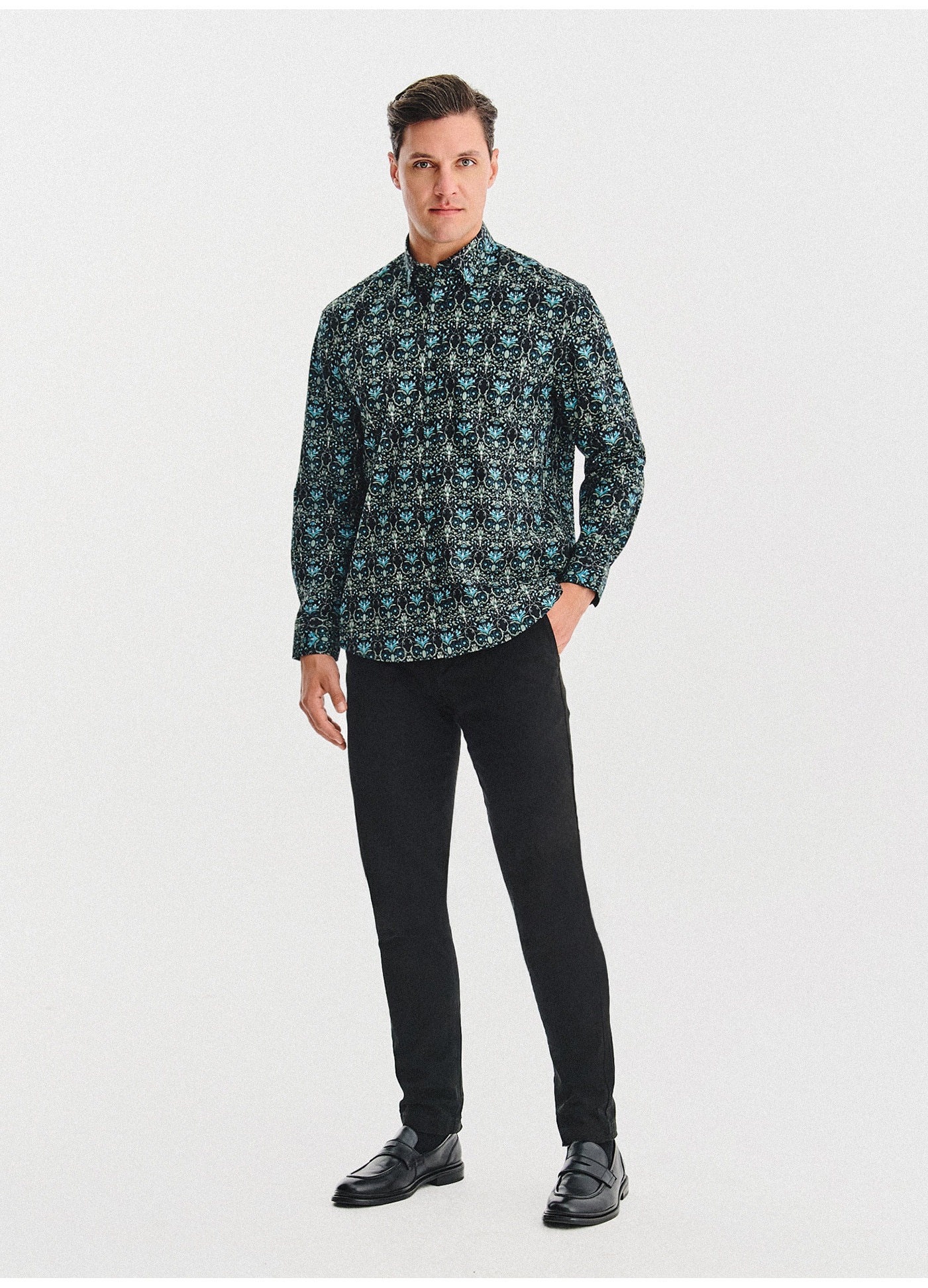 Férfi fekete ing türkiz virágmintával, Regular Fit, Pako Lorente, Fekete