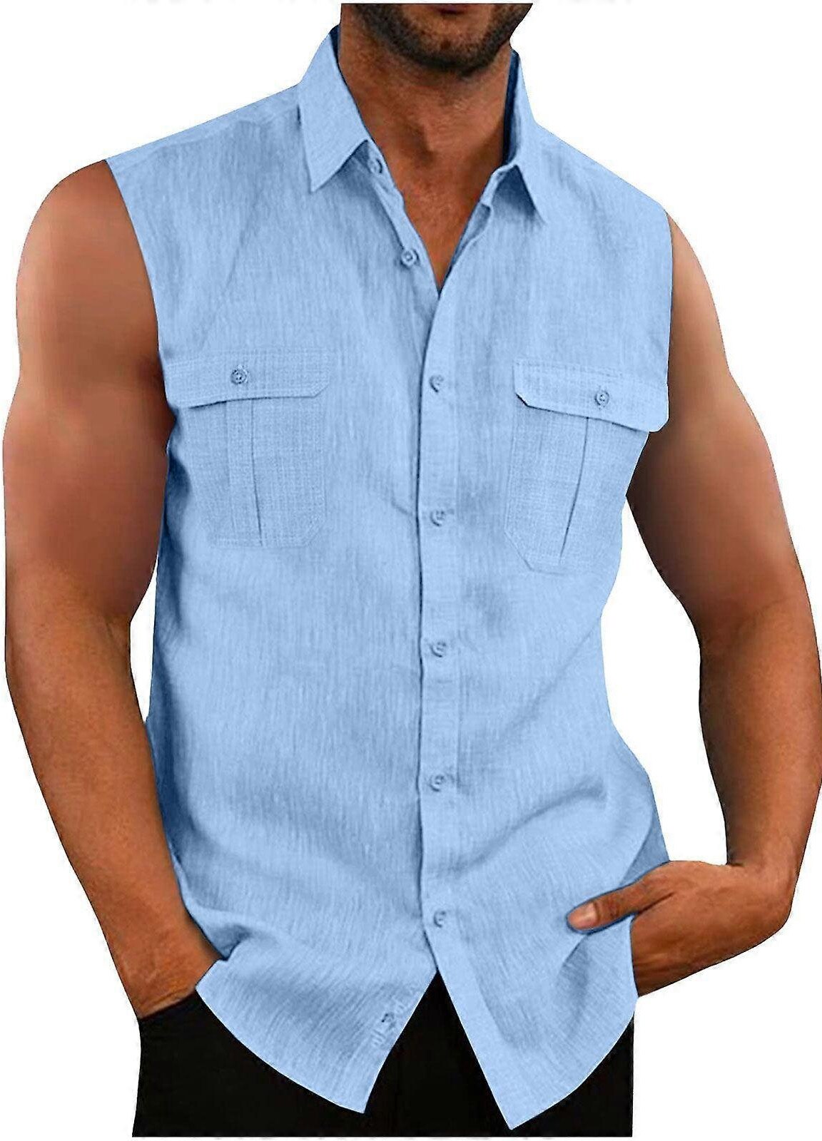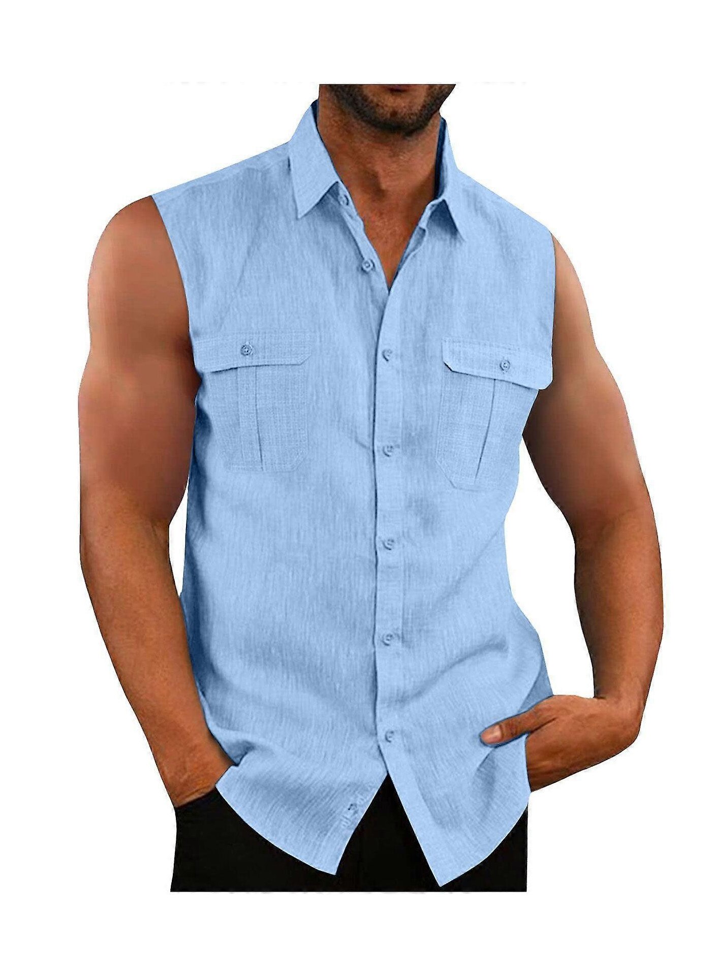 Férfi ing, poliészter, pamut, ujjatlan, Kék