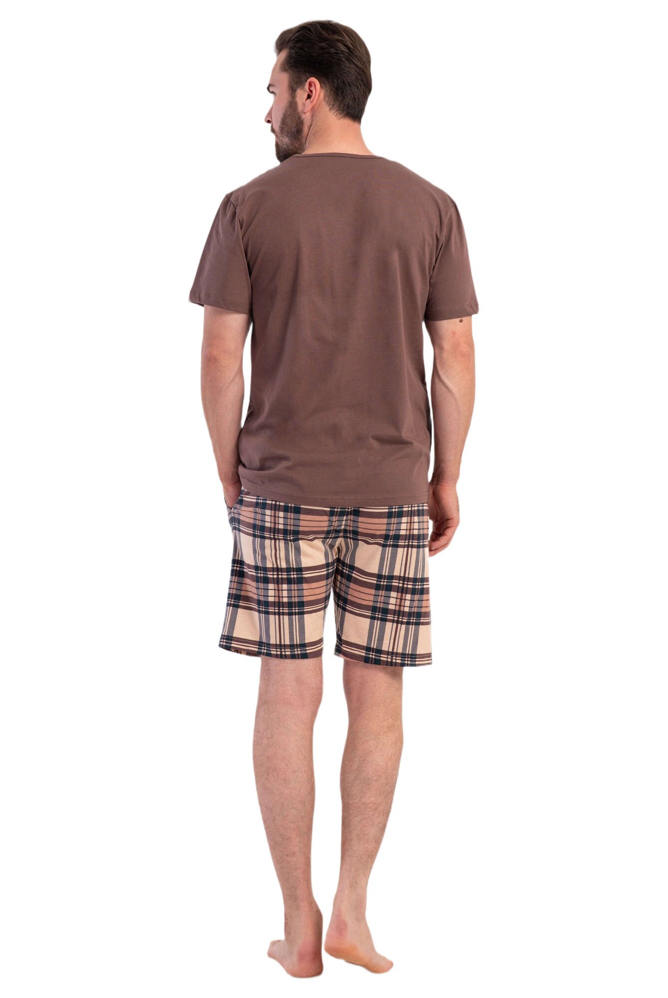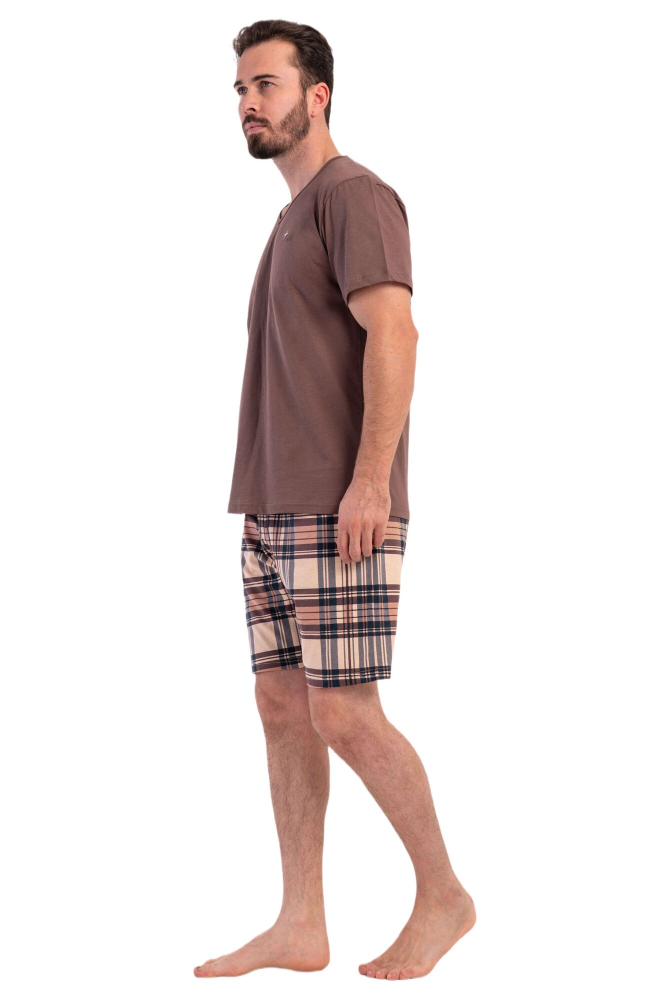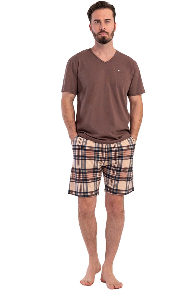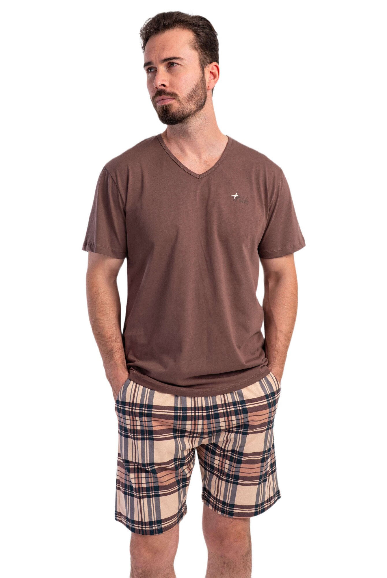 Férfi pizsama Vienetta Man, Basic Check modell, Barna
