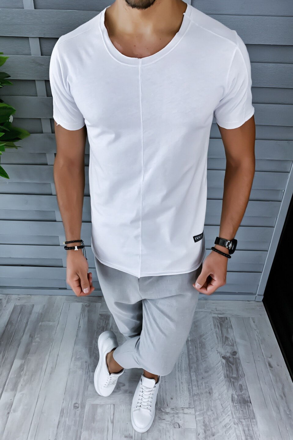 Férfi póló B1372, karcsúsított szabású, fehér, S
