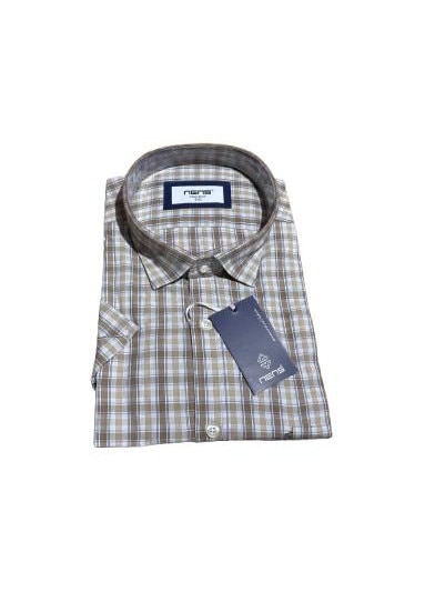 Férfi rövid ujjú ing, Nens-1202, Sötétbarna/Világosbarna