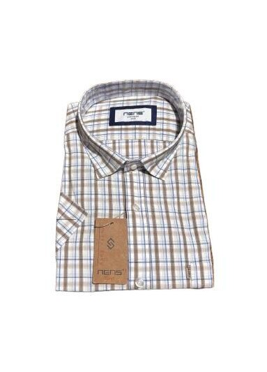 Férfi rövid ujjú ing, normál szabás-1382, Fehér/Világosbarna/Világoskék