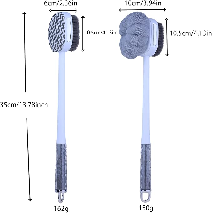 Fürdőkefe, 2 az 1-ben, hosszú nyéllel, hámlasztó, normál bőrre
