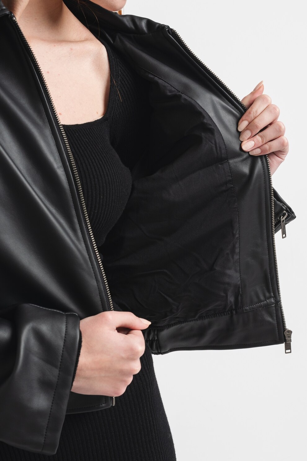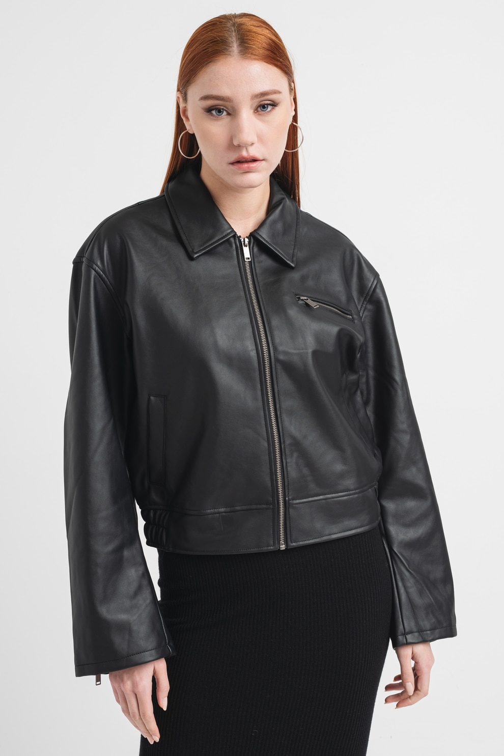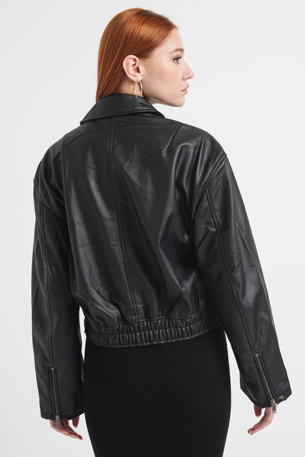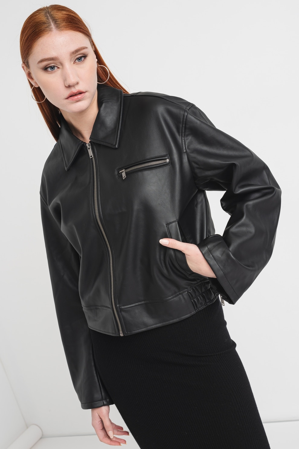 Gina Tricot, Crop műbőr dzseki, Fekete
