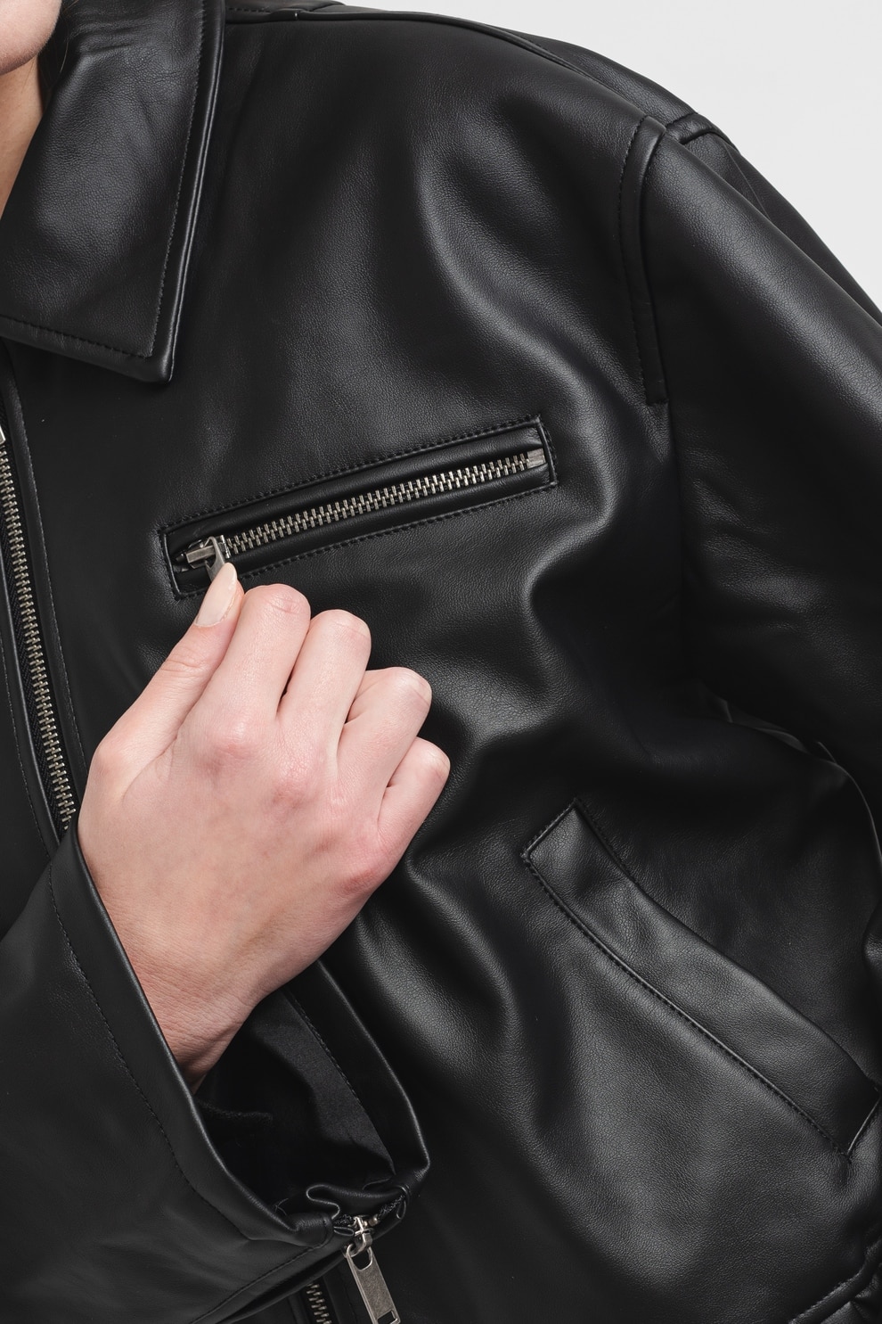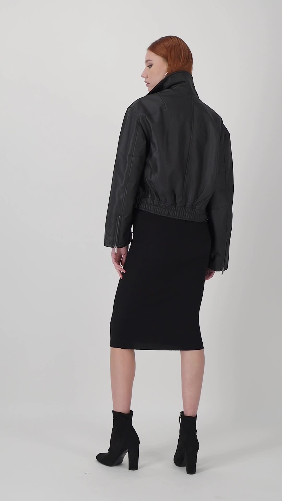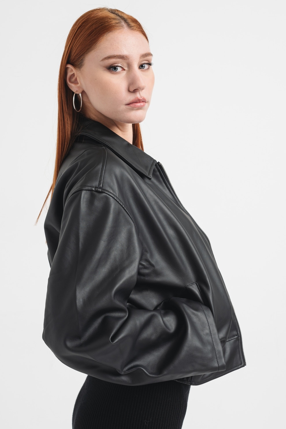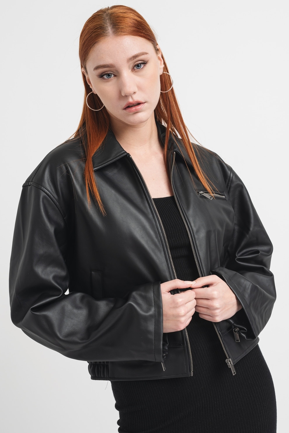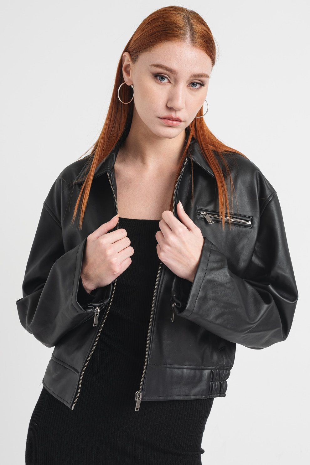 Gina Tricot, Crop műbőr dzseki, Fekete