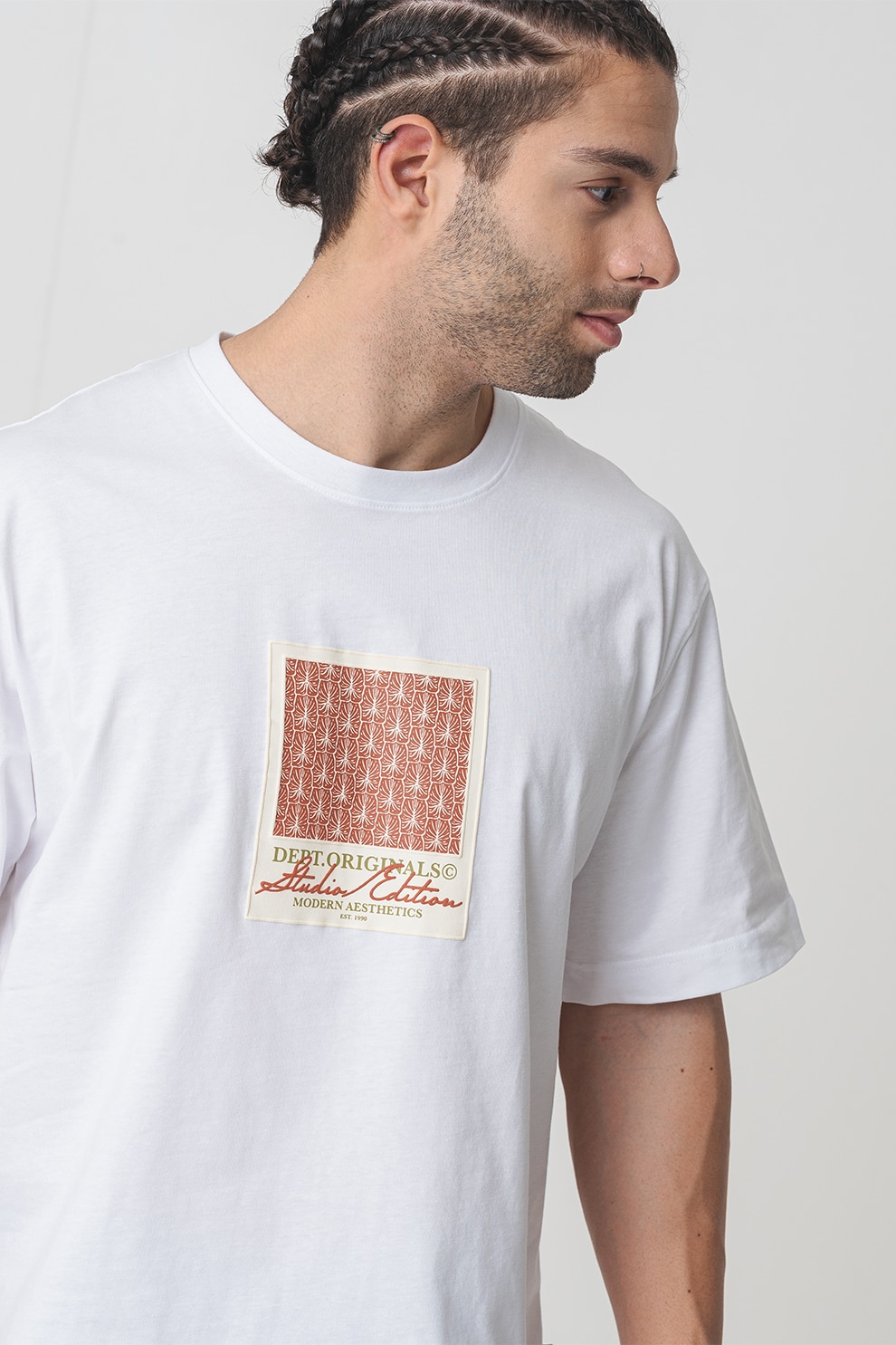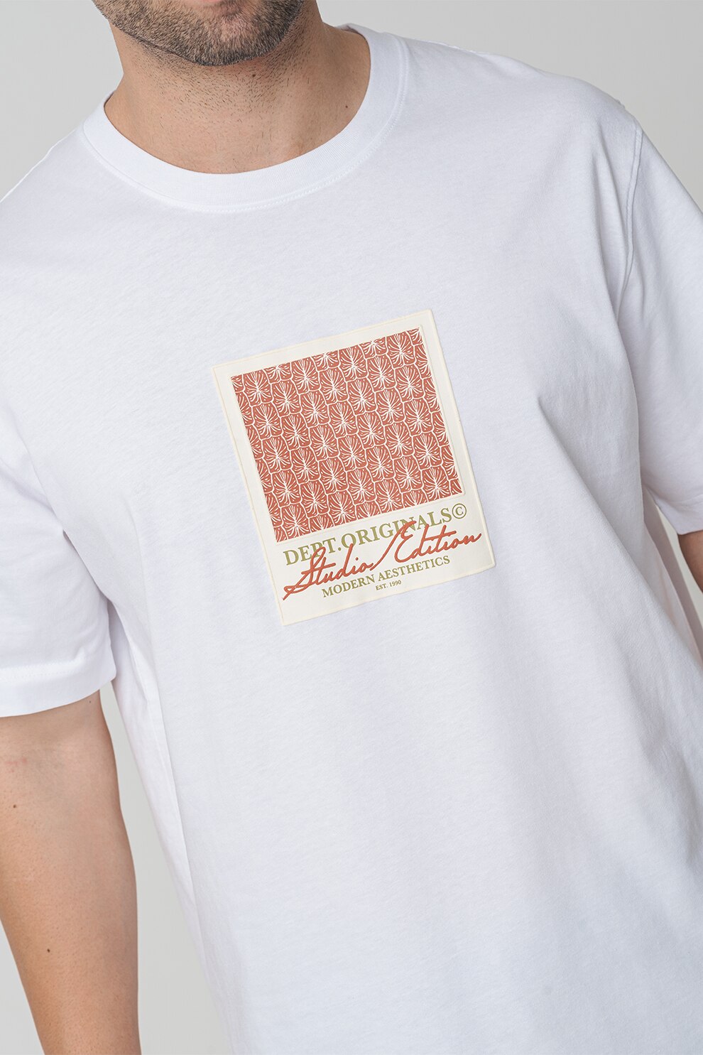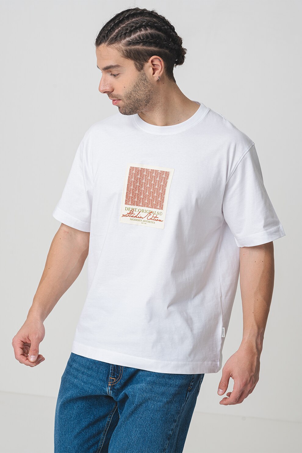 Jack & Jones - Bő fazonú mintás póló, Fehér/Téglavörös