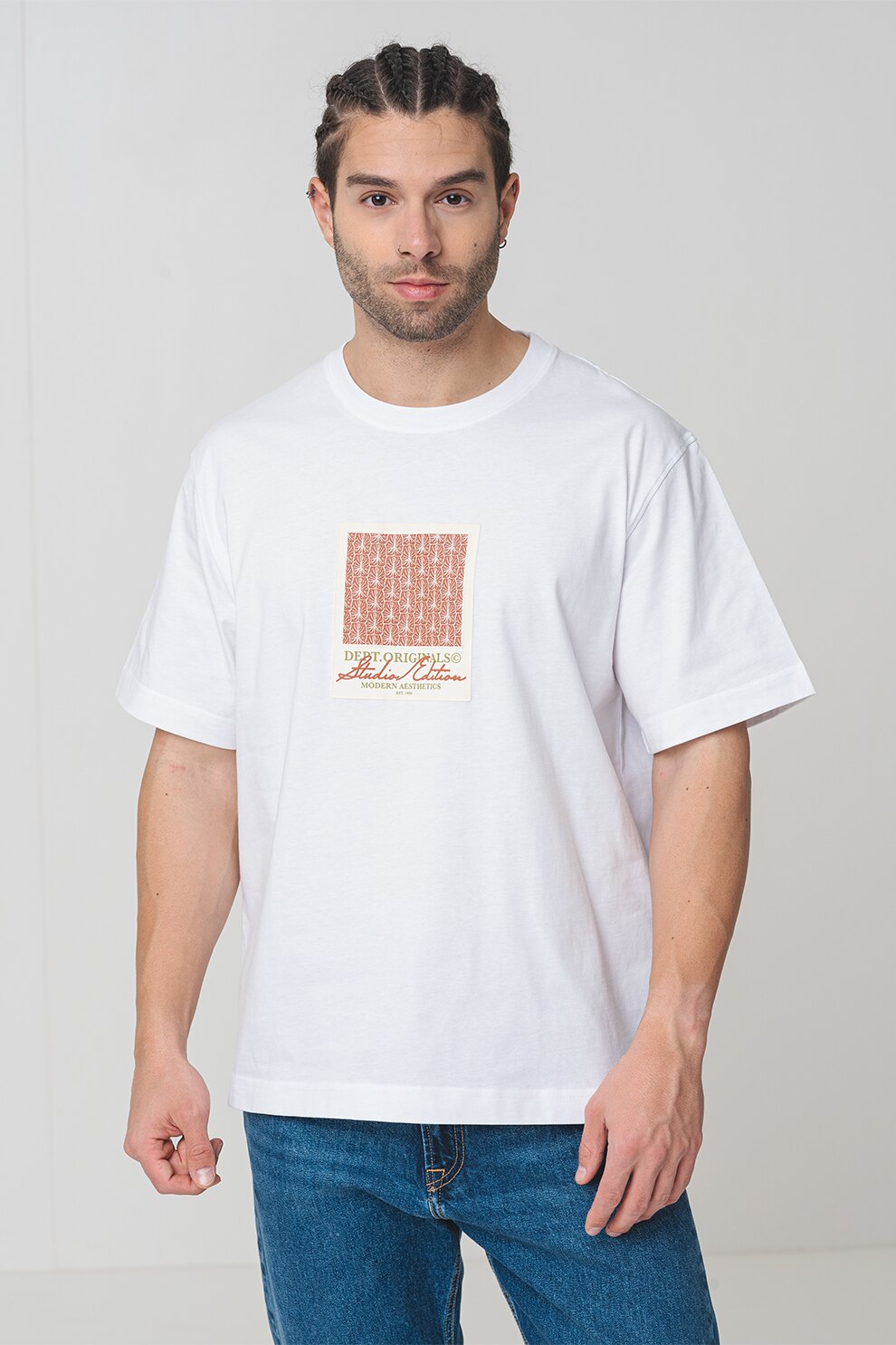 Jack & Jones, Bő fazonú mintás póló, Fehér/Téglavörös
