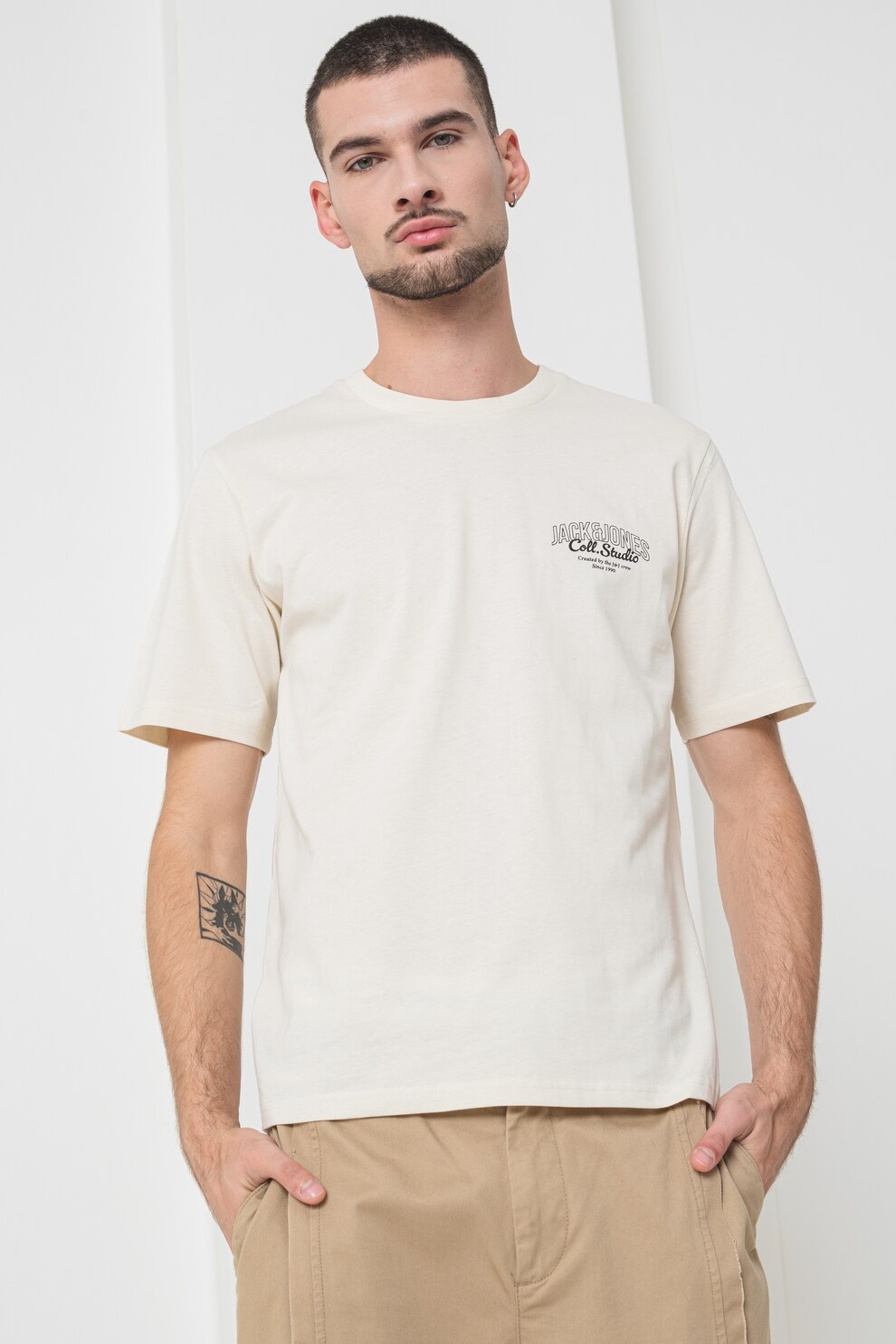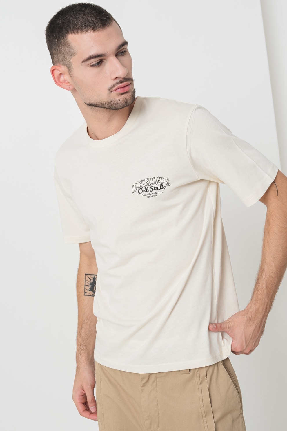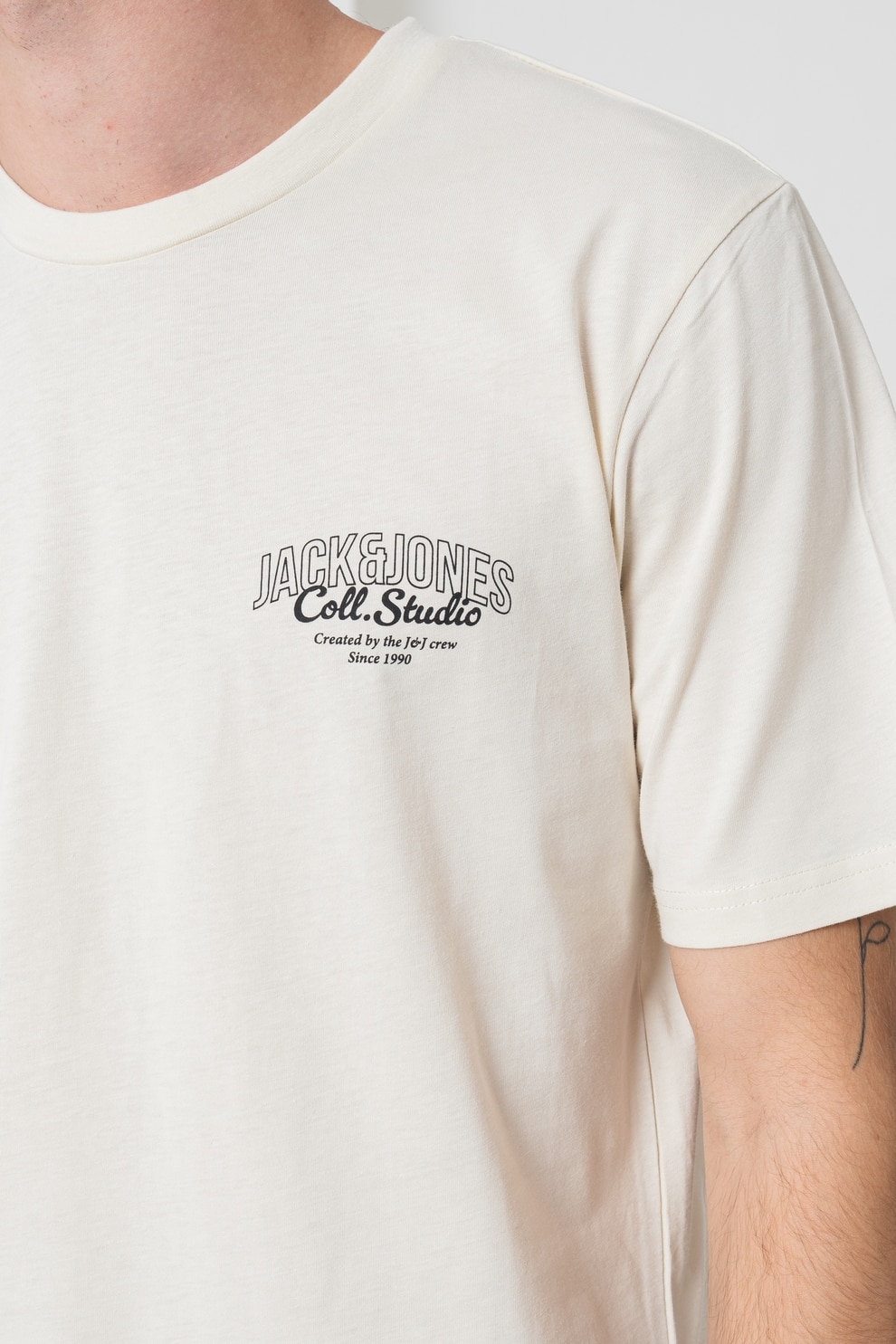 Jack & Jones - Kerek nyakú mintás pamutpóló, Halványsárga