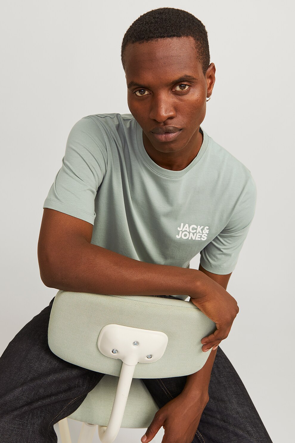 Jack & Jones - Organikuspamut póló gumis logóval, Világoszöld