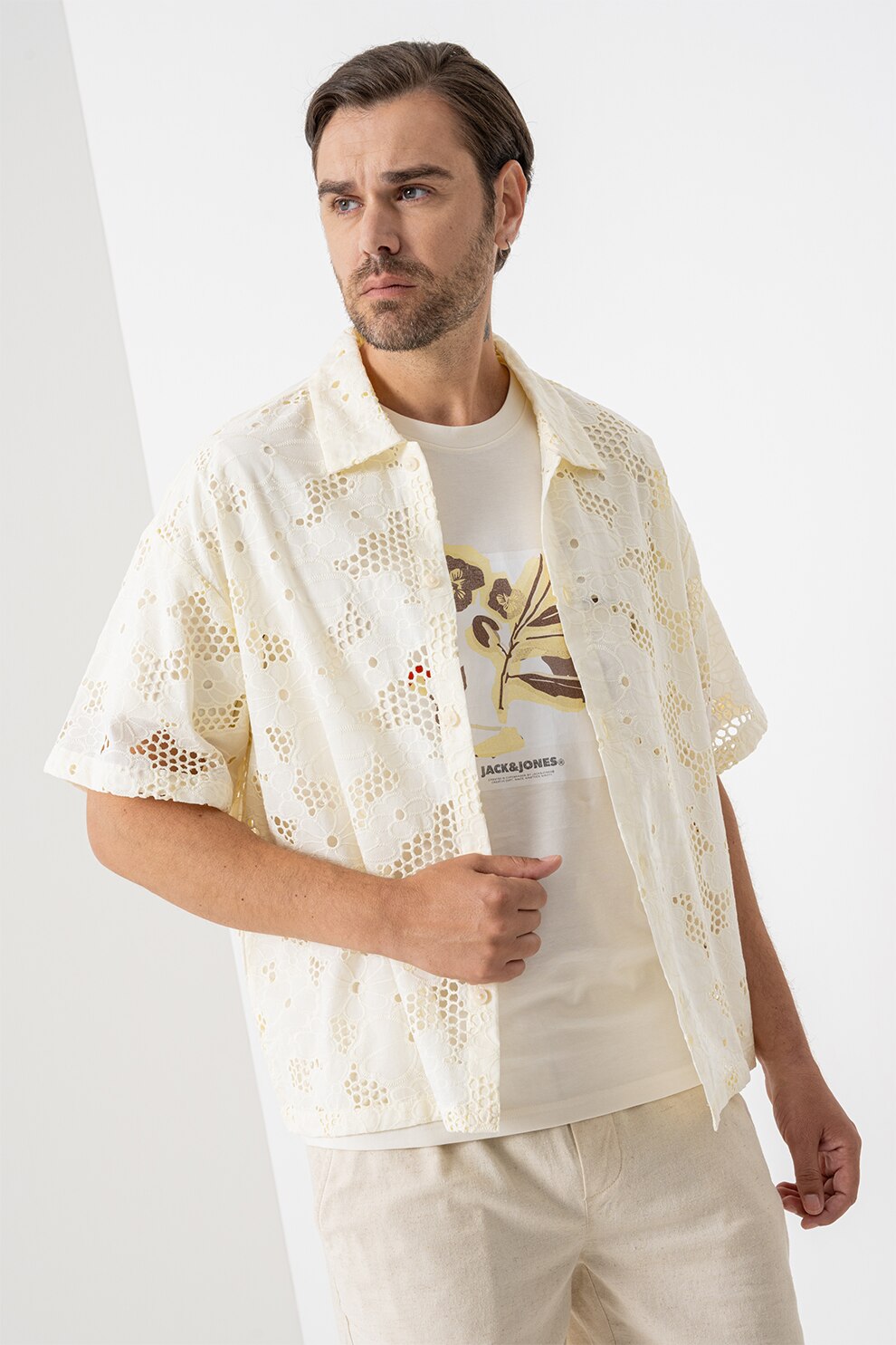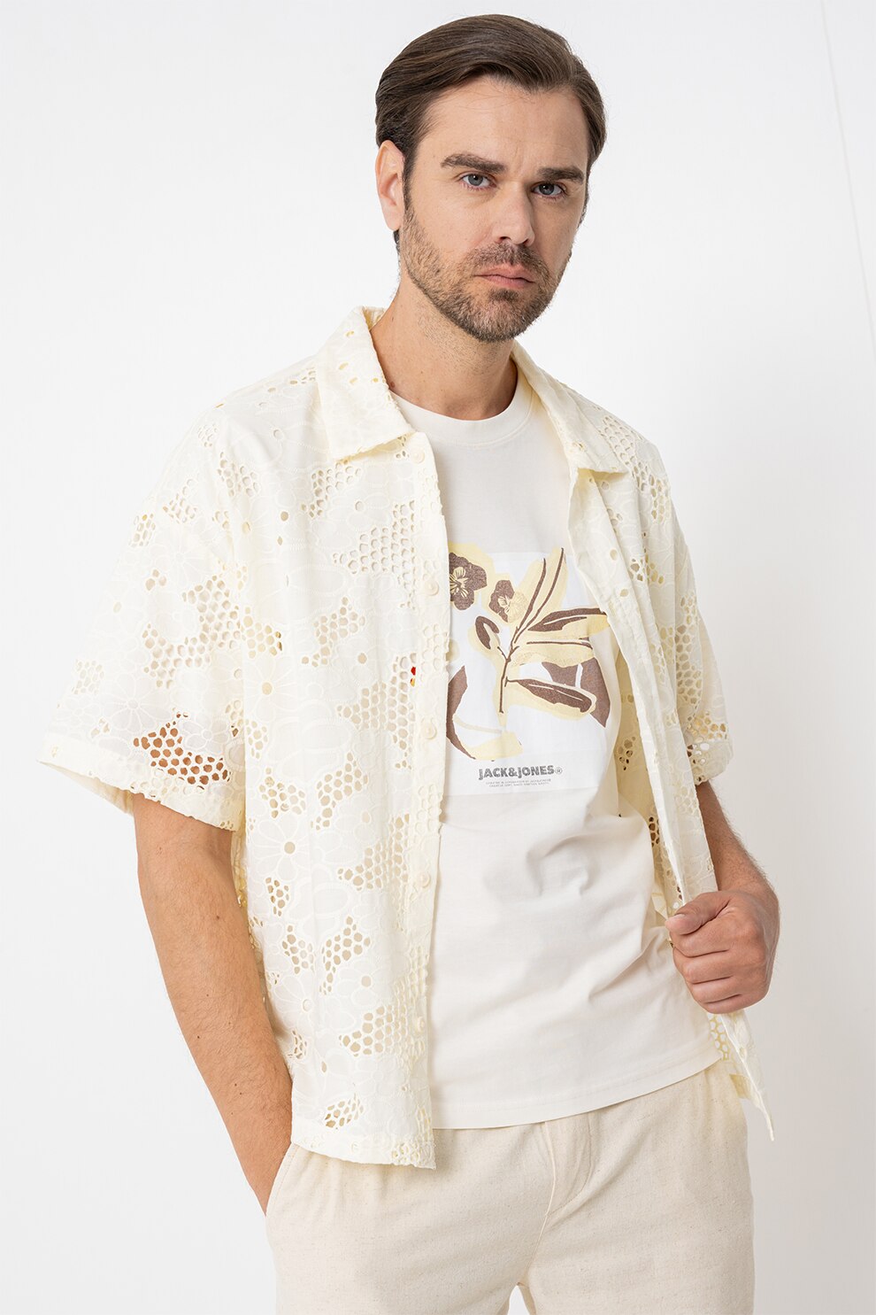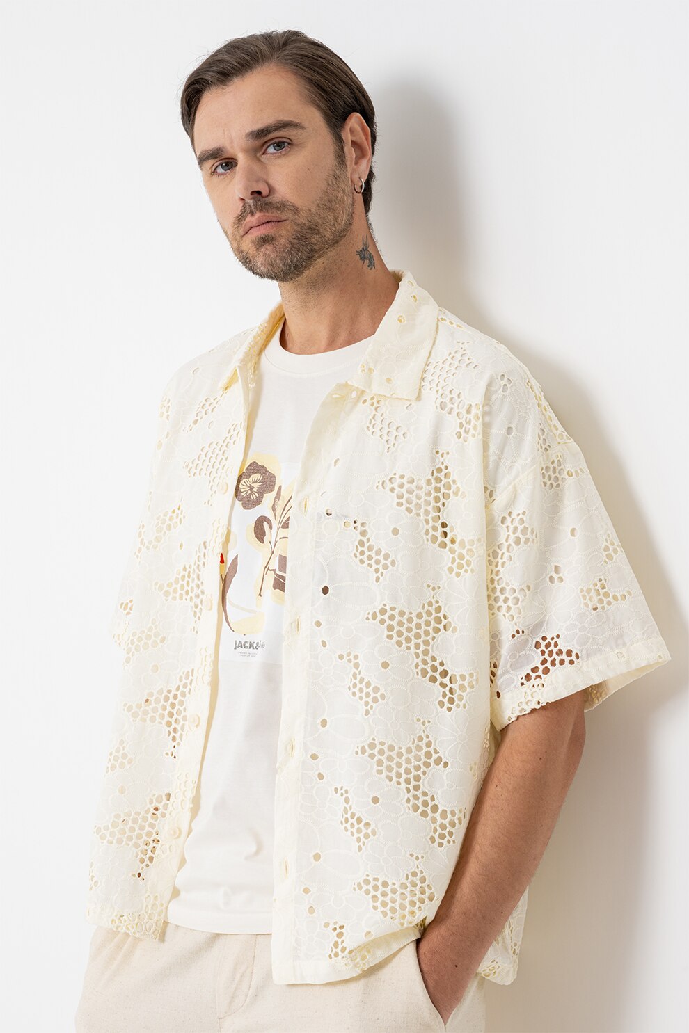 Jack & Jones - Perforált dizájnú ing, Halványsárga