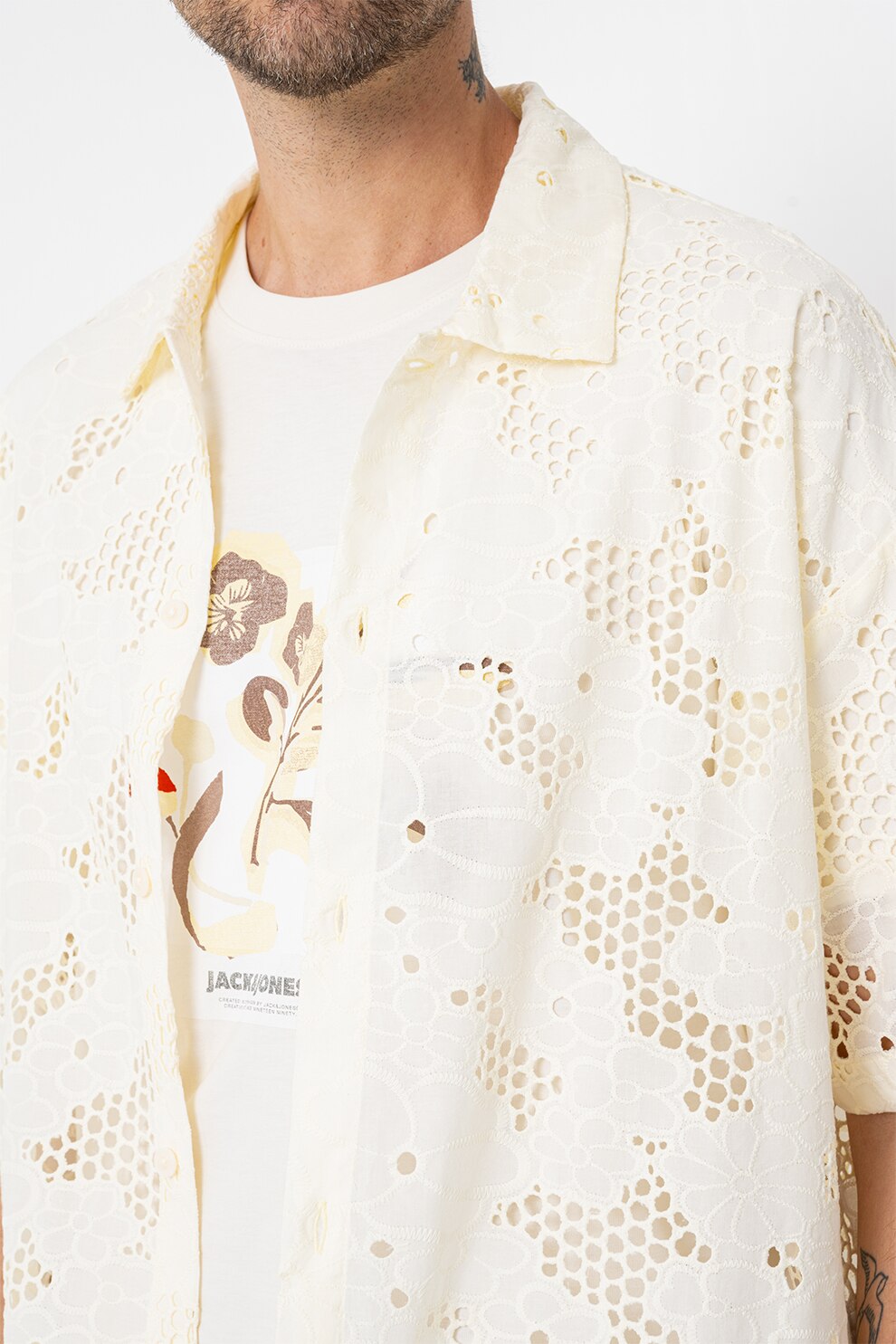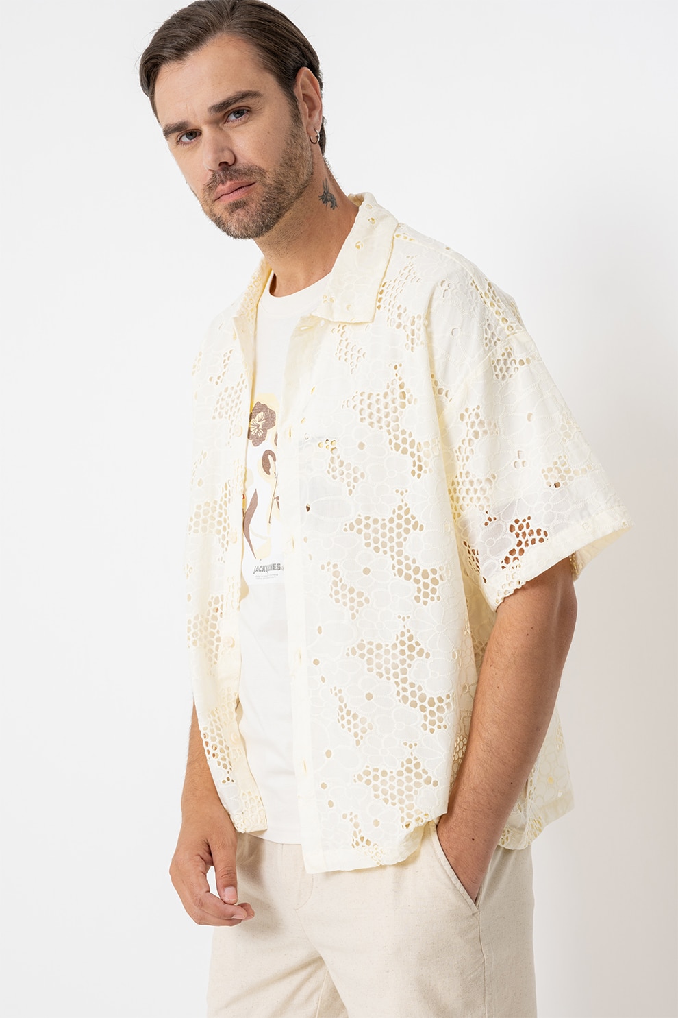 Jack & Jones, Perforált dizájnú ing, Halványsárga