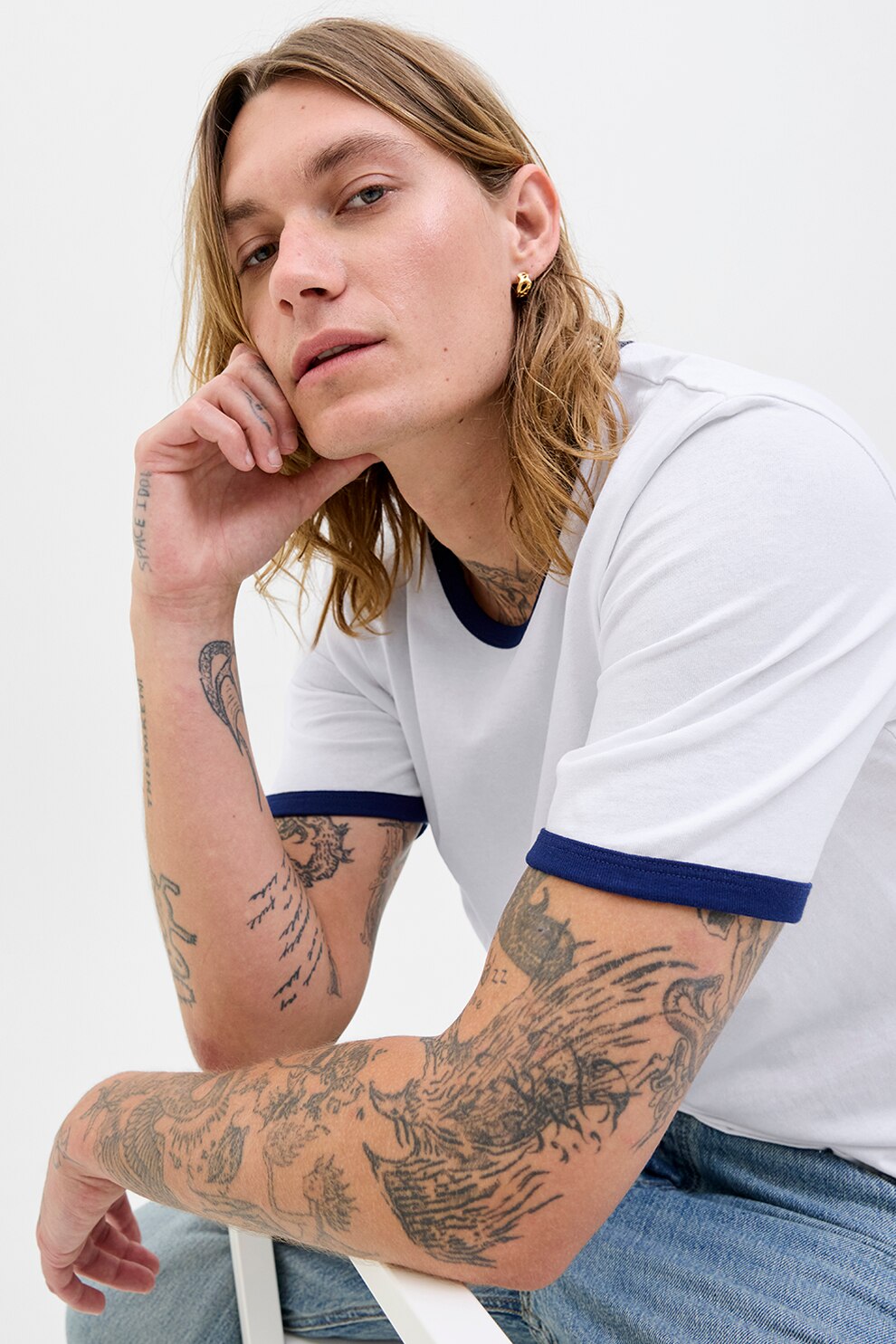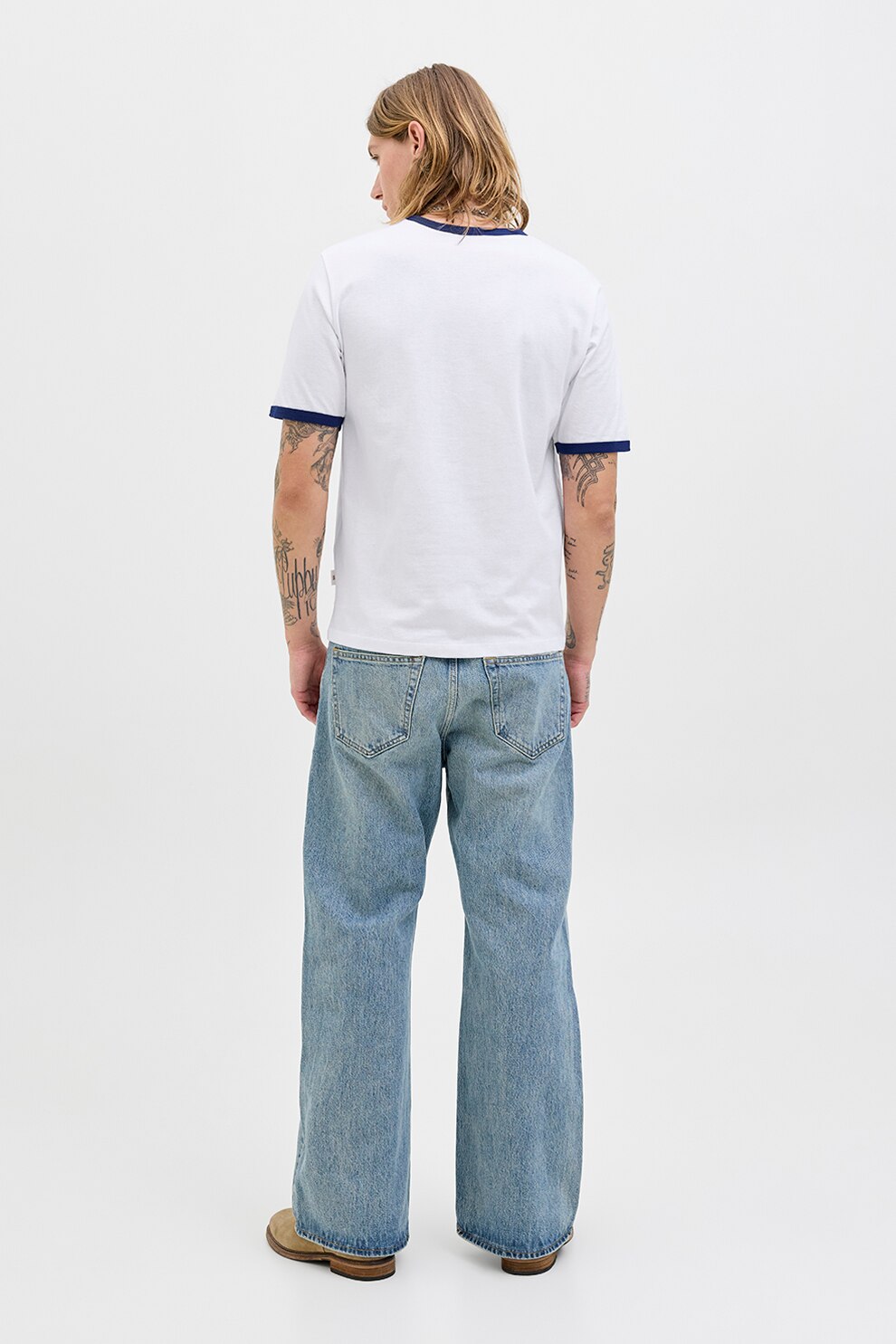 Jack & Jones - Póló kontrasztos részletekkel, Fehér/Sötétkék