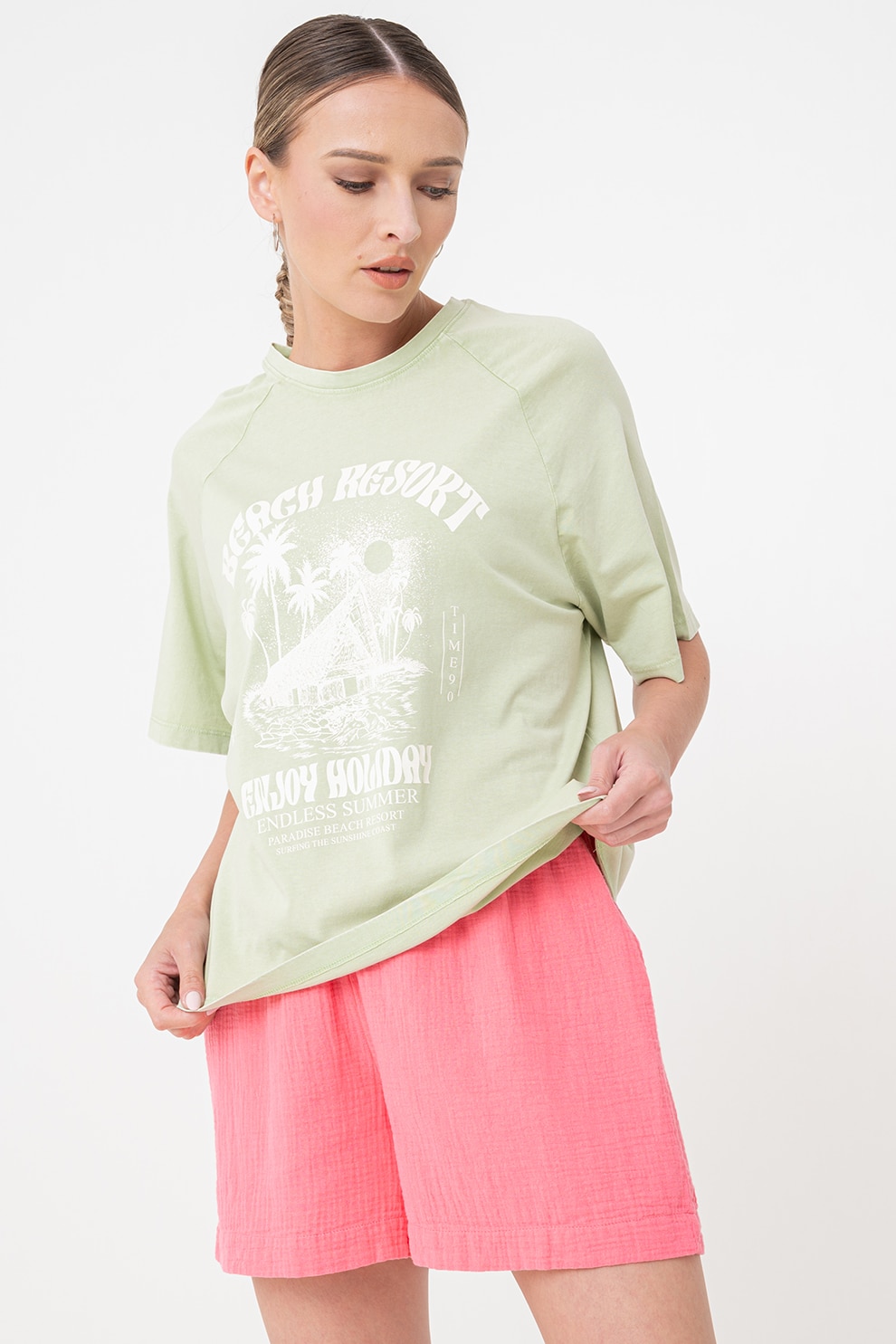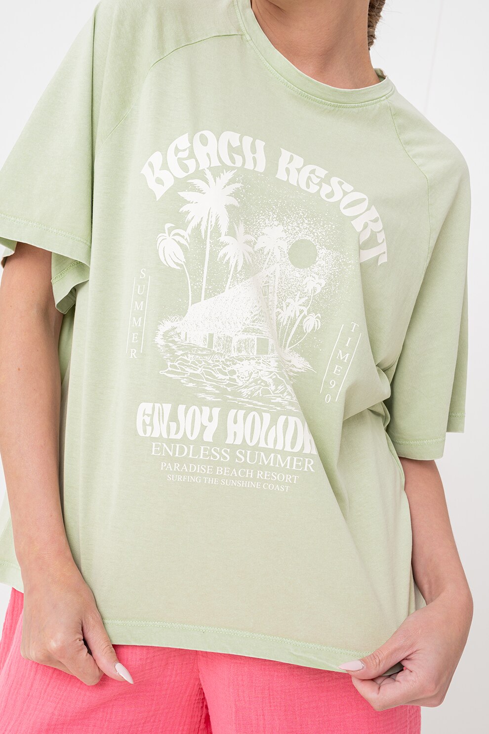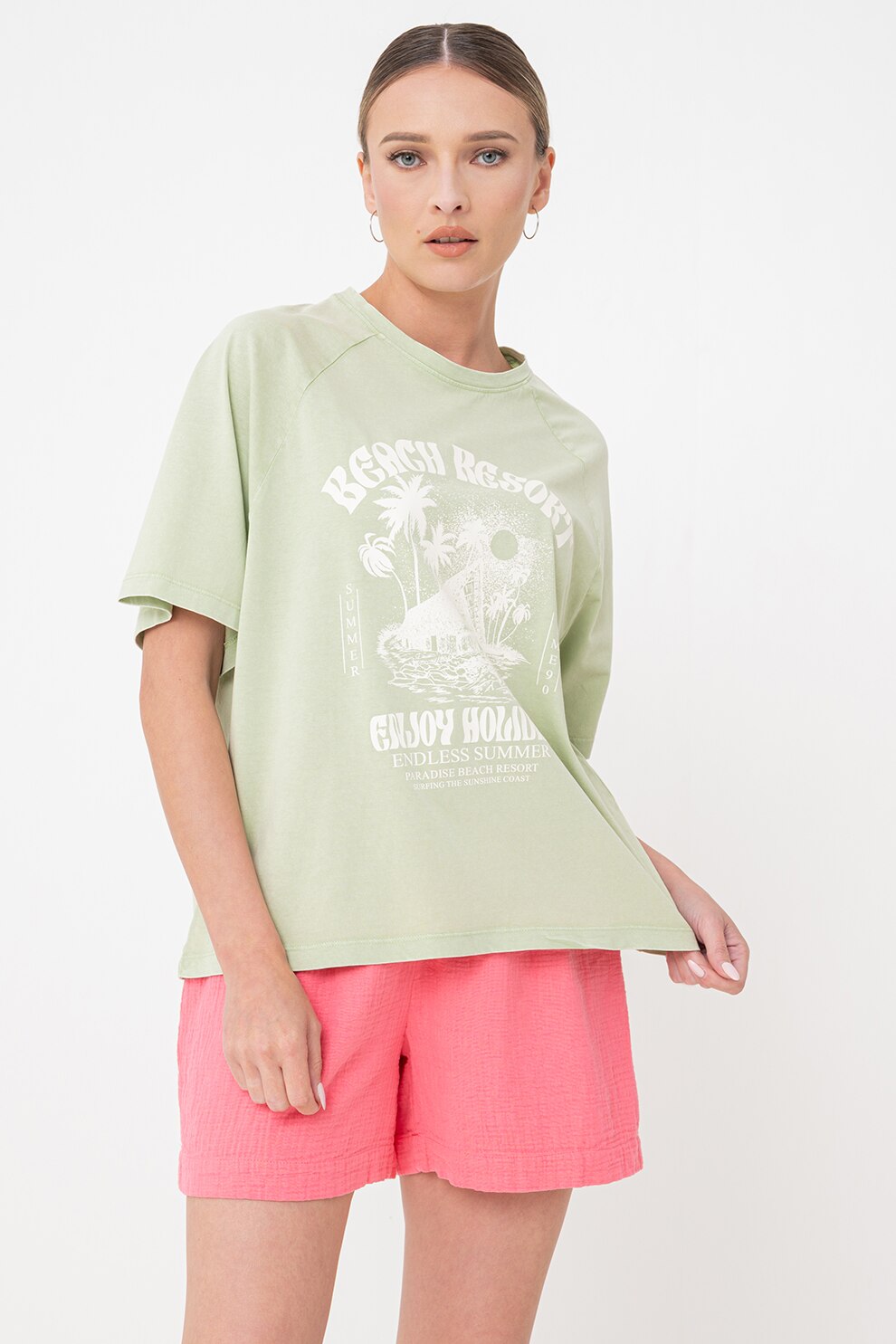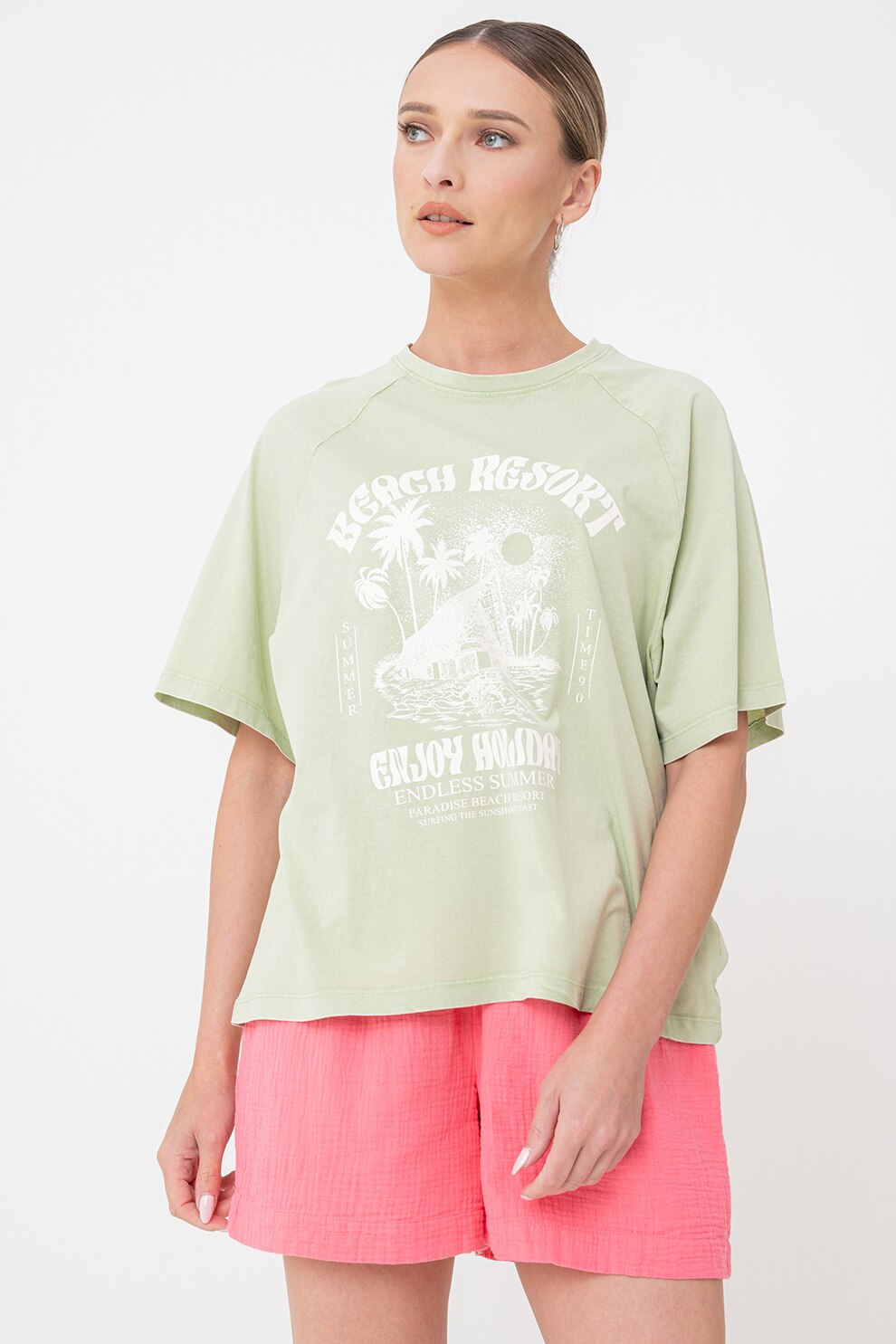JdY, Bő fazonú mintás póló raglánujjakkal, Halványzöld
