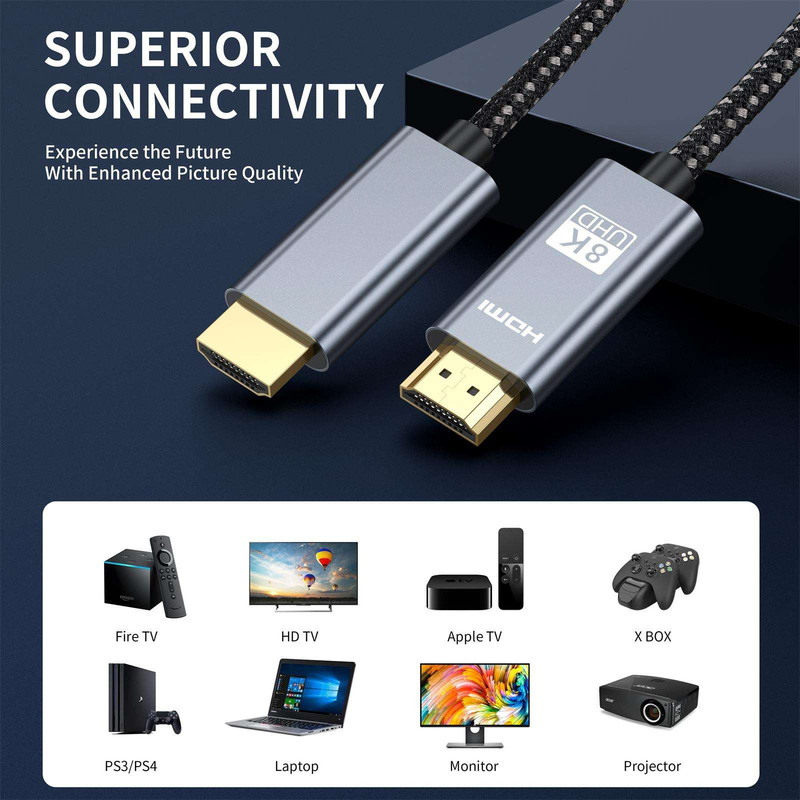 Kábel, HDMI2.1, 8K60HZ/4K120HZ, 48Gbps, HDR, 3D, 5m