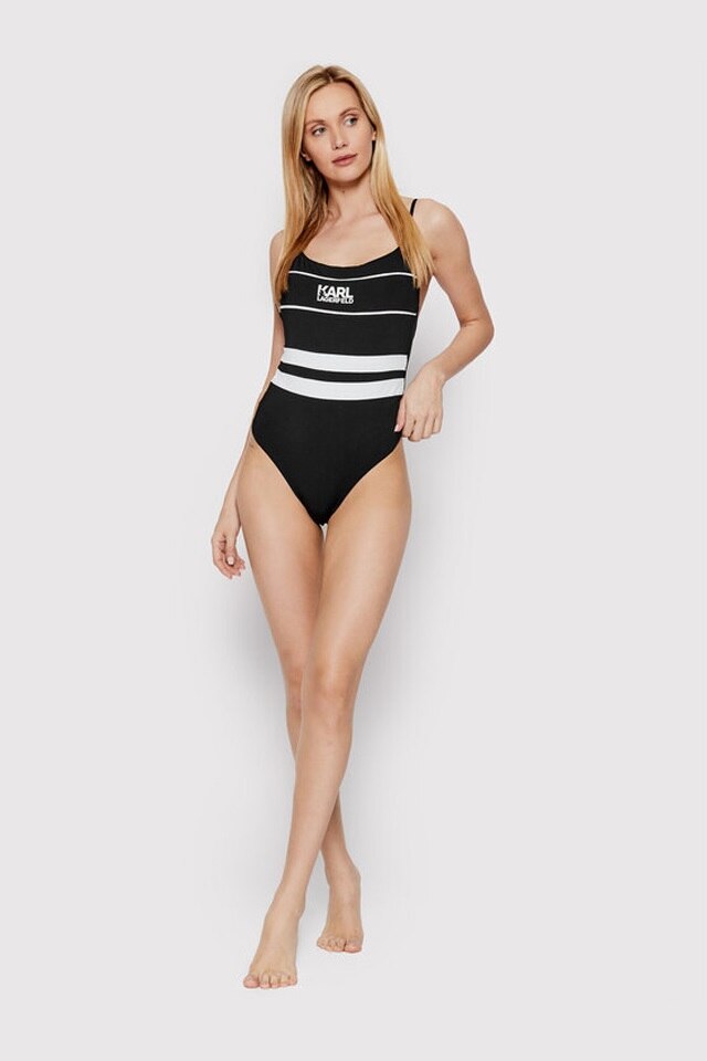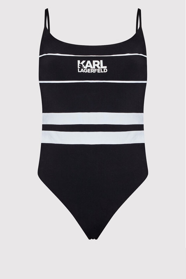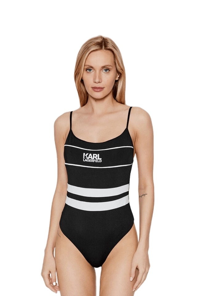 Karl Lagerfeld, Egyrészes fürdőruha csíkos mintával, Fekete