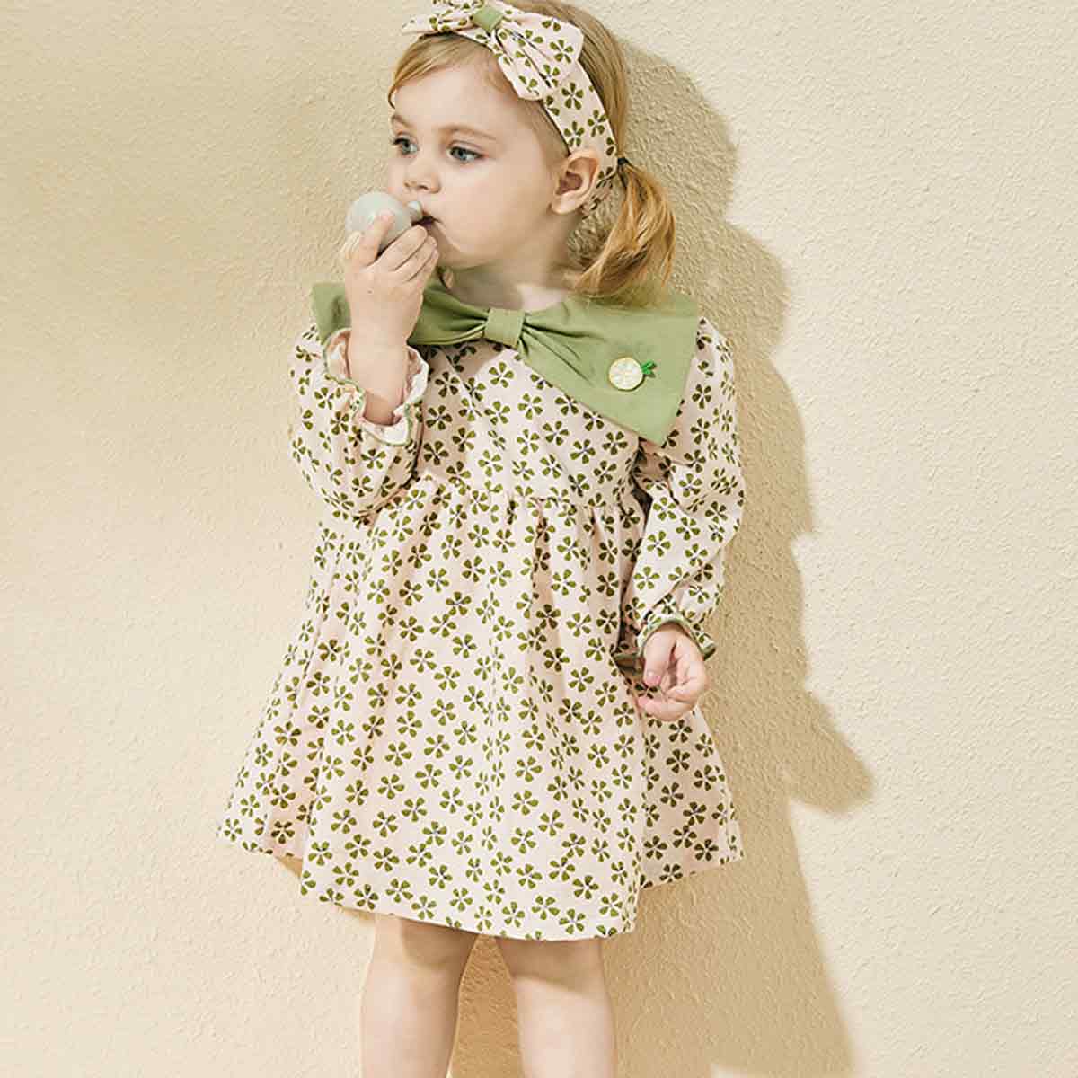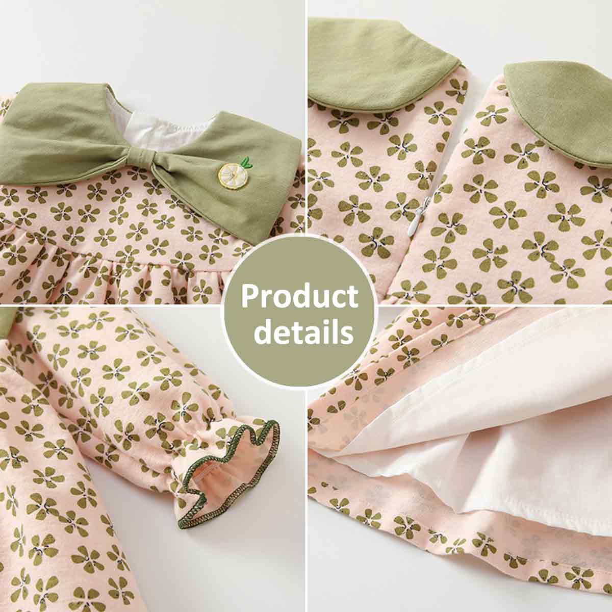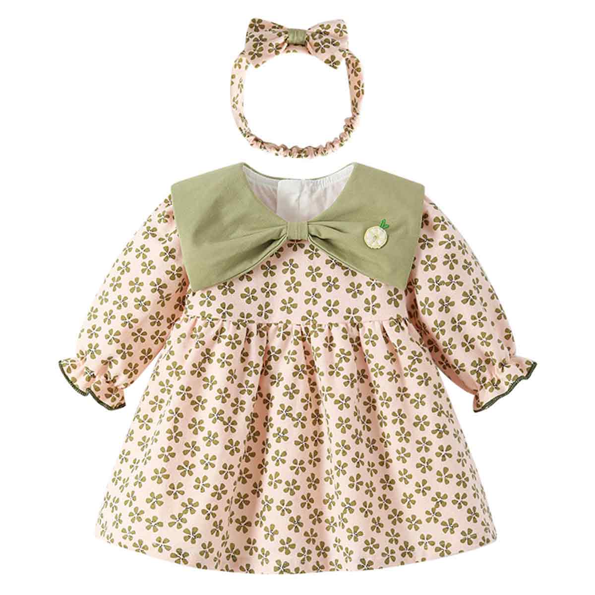 Lányruha/fejpánt szett, MMgoqqt, pamut, rózsaszín/zöld, Zöld/Rózsaszín