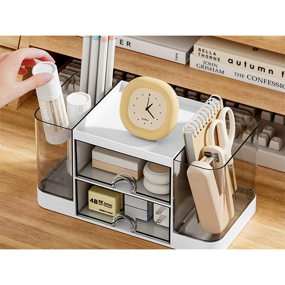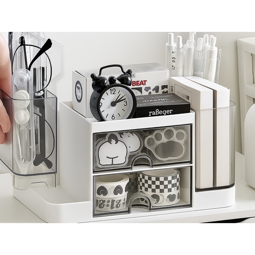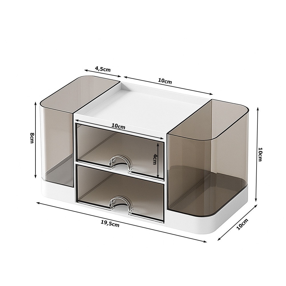 Multifunkcionális asztali rendszerező, 19.5 x 10 x 10 cm, 2 fiók, 5 rekesz