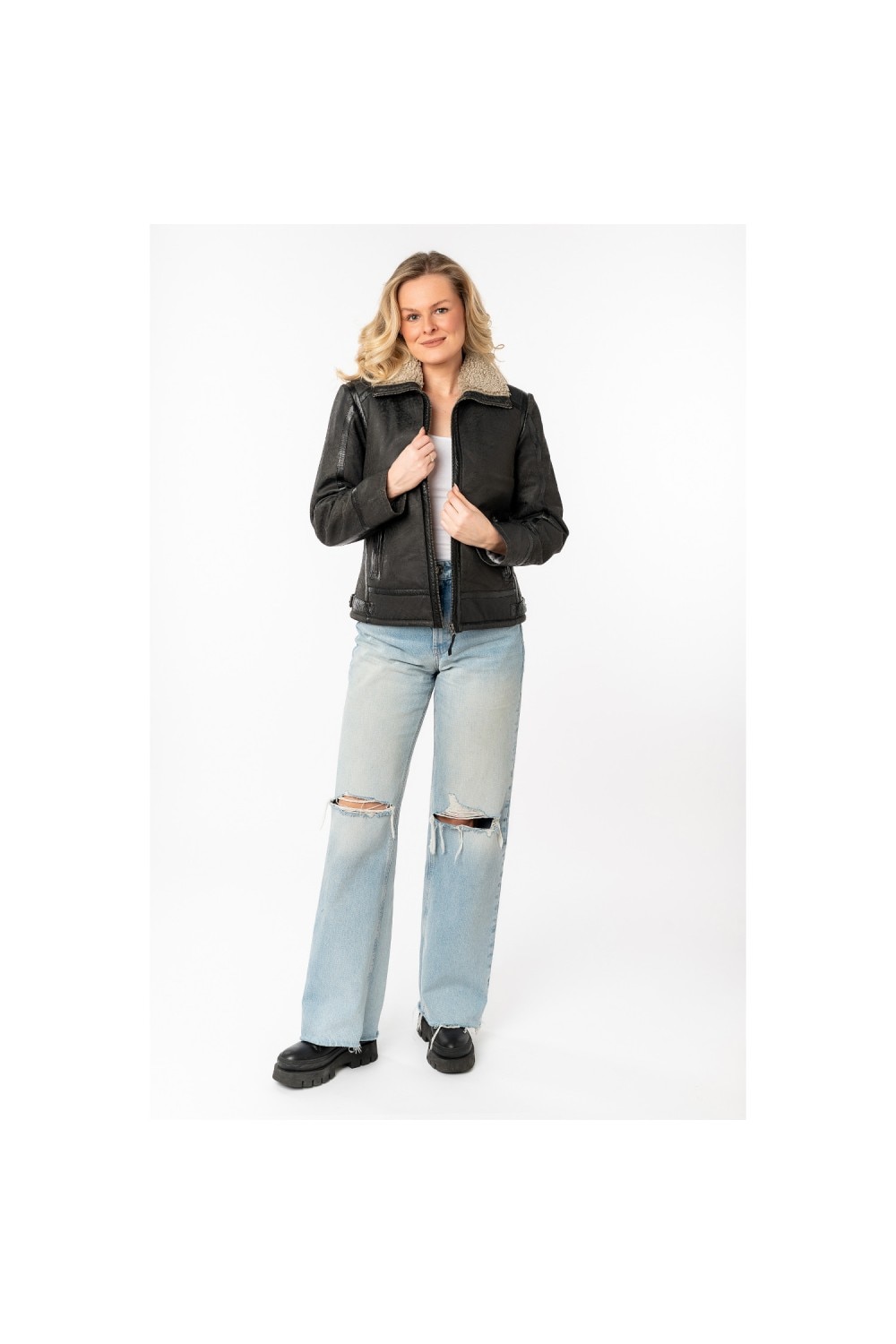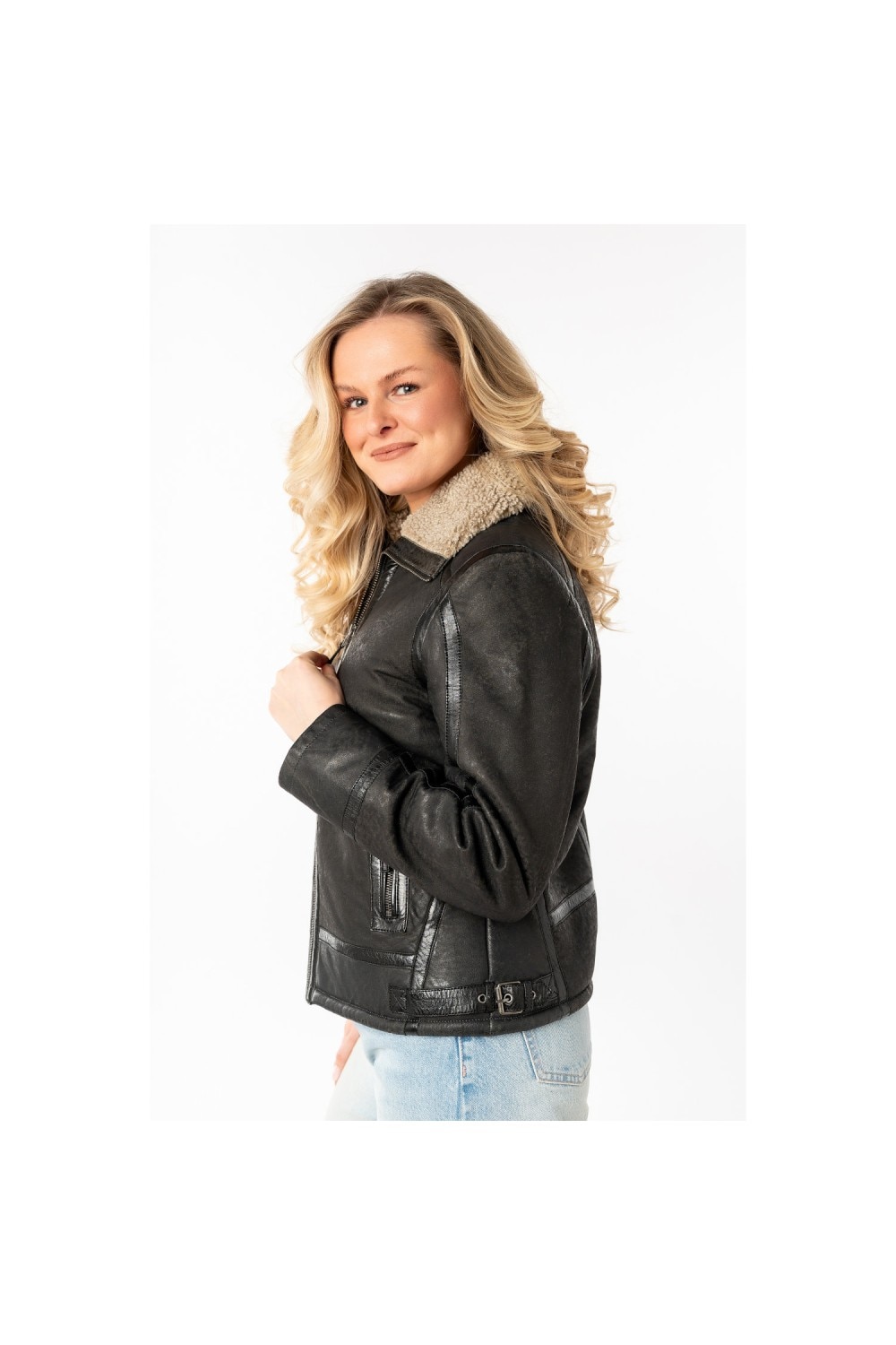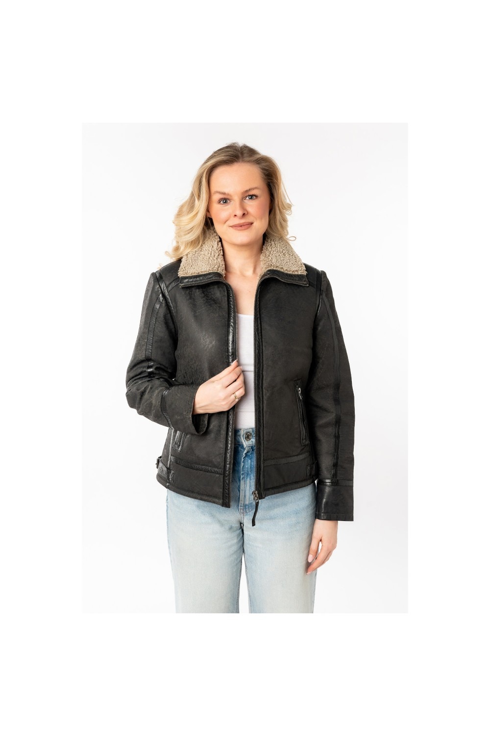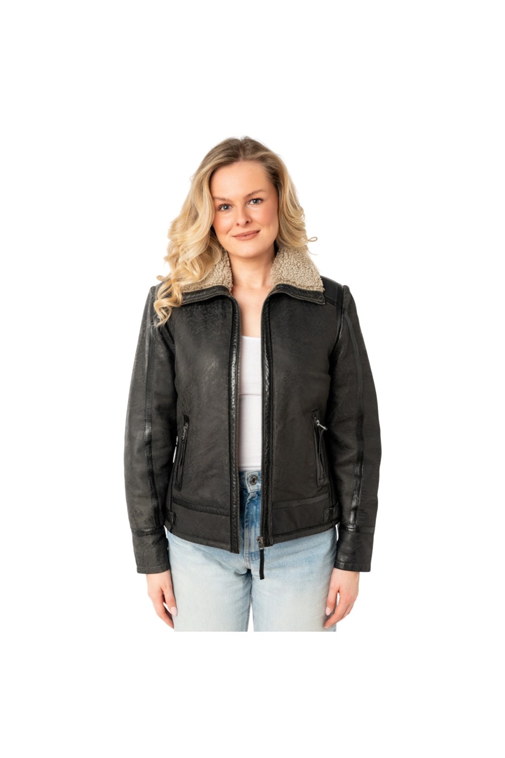 Női bőr mellény Mauritius Antracit MWIske, Fekete