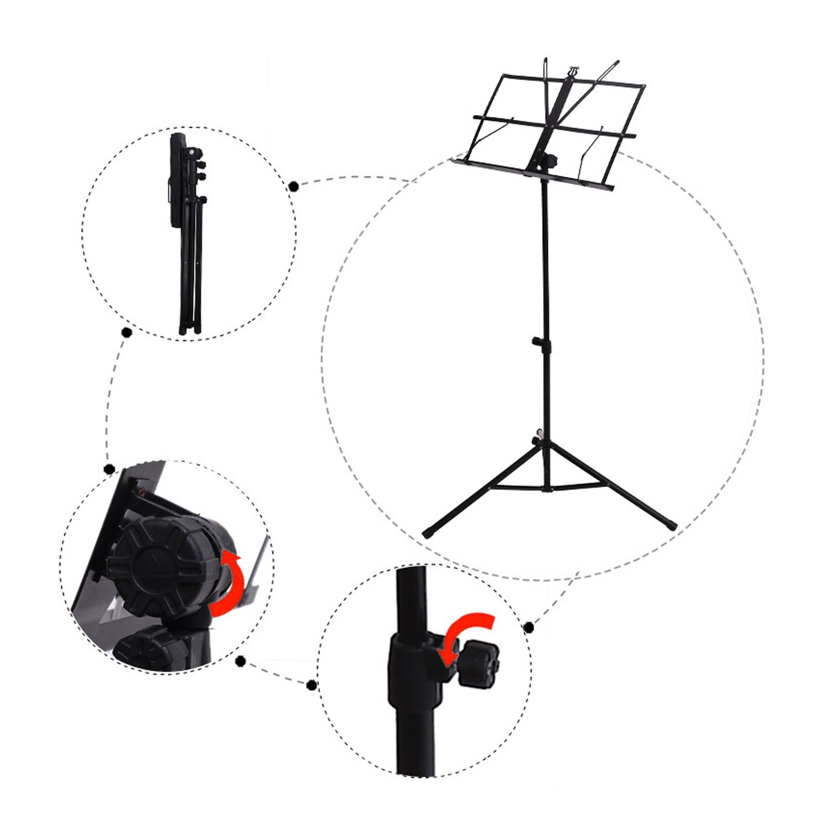 Összecsukható kottatartó állvány, állítható magasságú, fekete