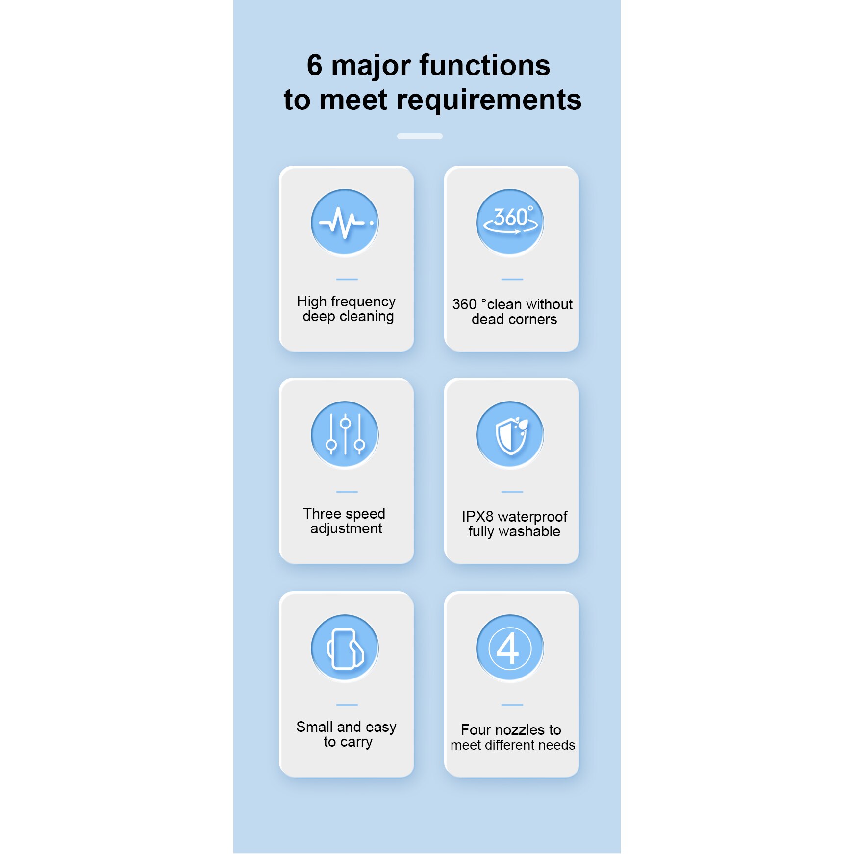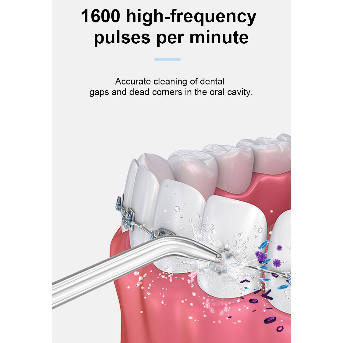 Oxylux elektromos szájzuhany, 4 nyomásfokozat, 5 fej, hordozható, 1100mAh, 350g