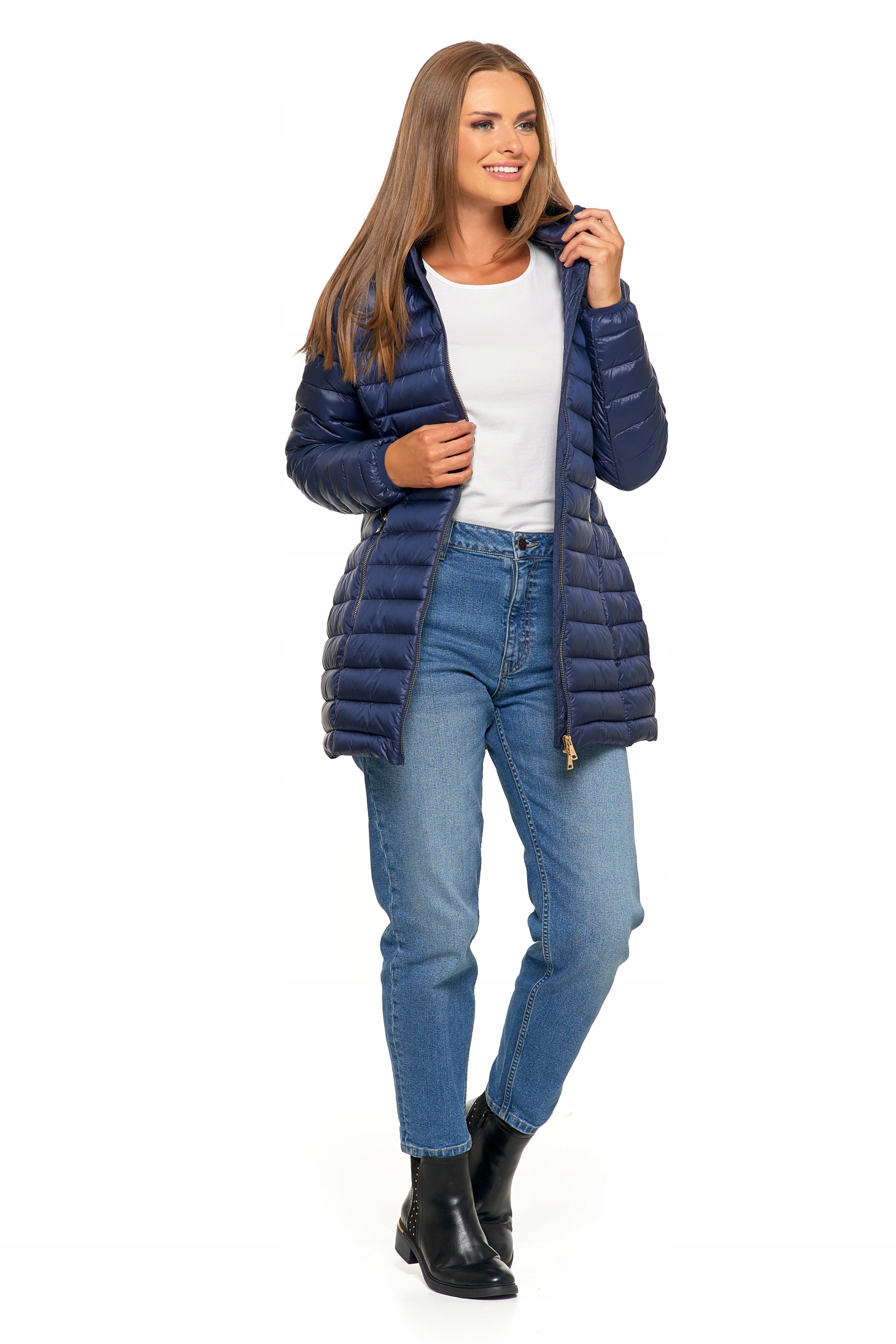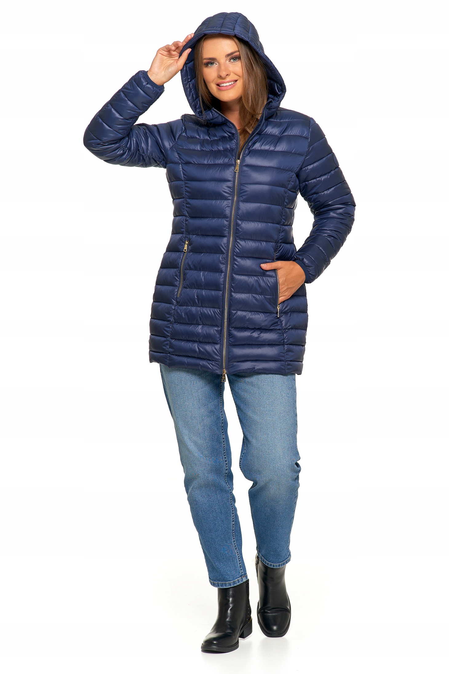 Pehelykabát kapucnival, Moraj, steppelt, 100% poliamid, sötétkék