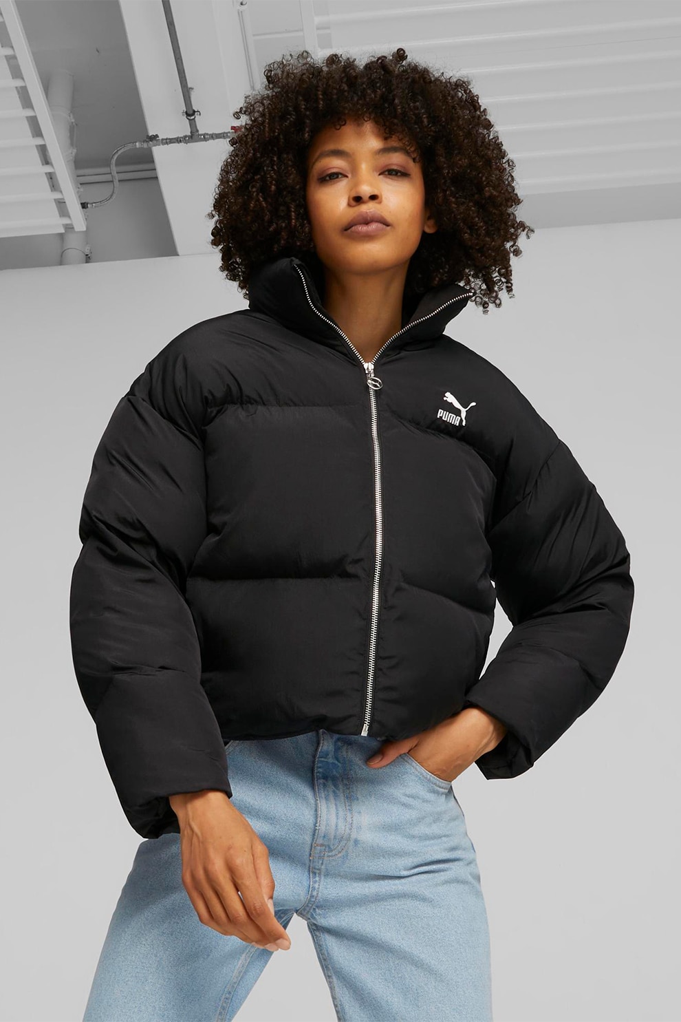 Puma - Classics bő fazonú télikabát magas gallérral, Fekete