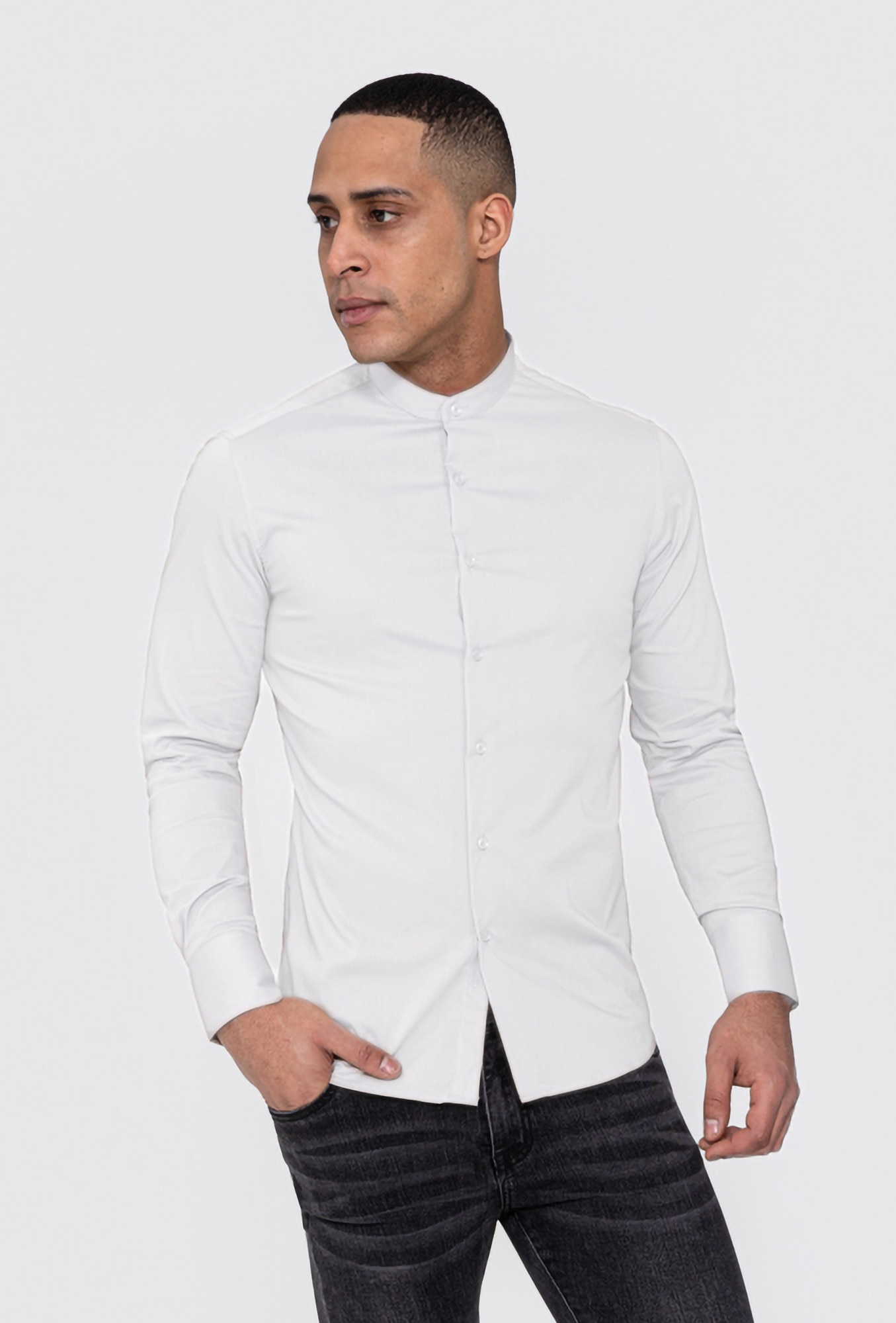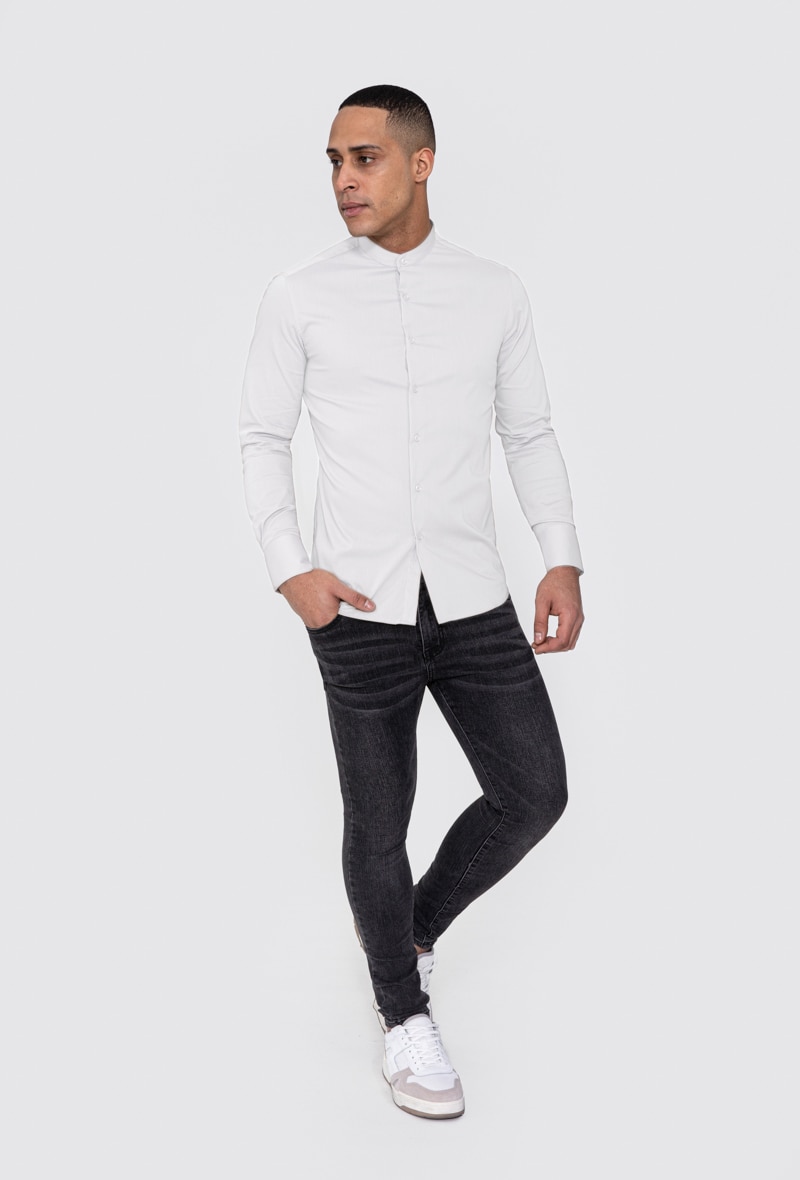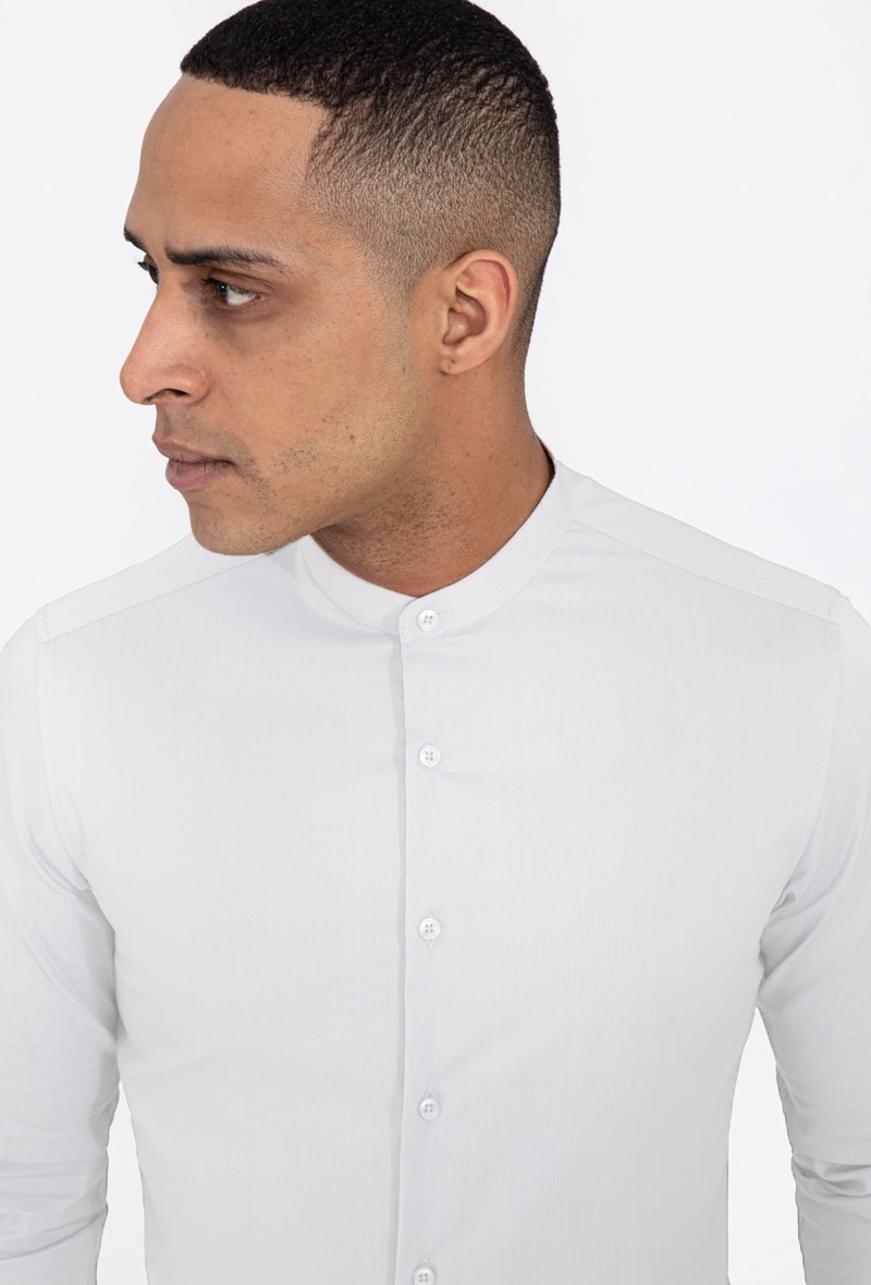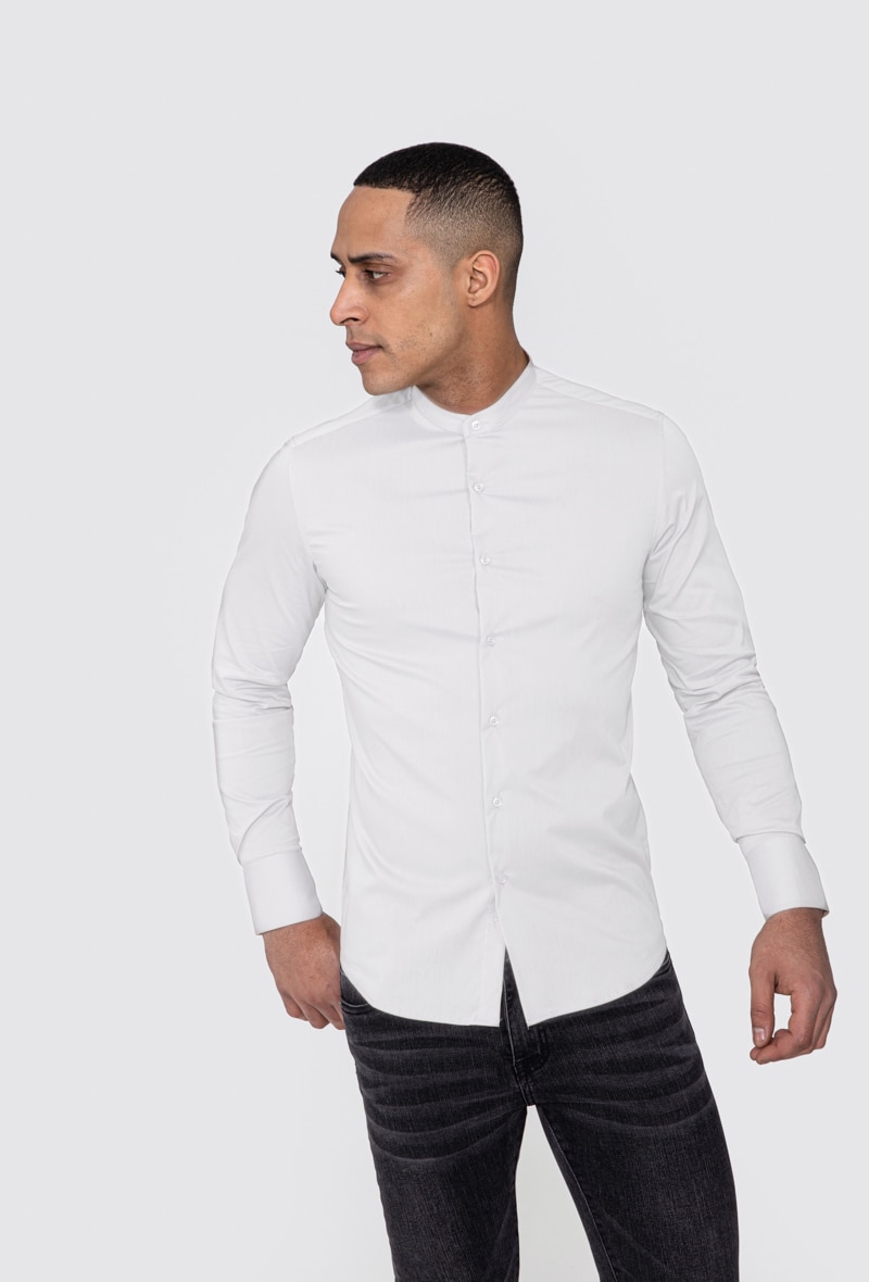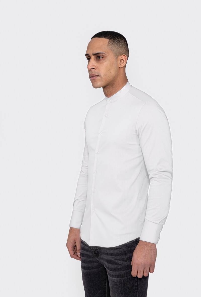 Slim fit férfi ing, tunika, pamut, Fehér