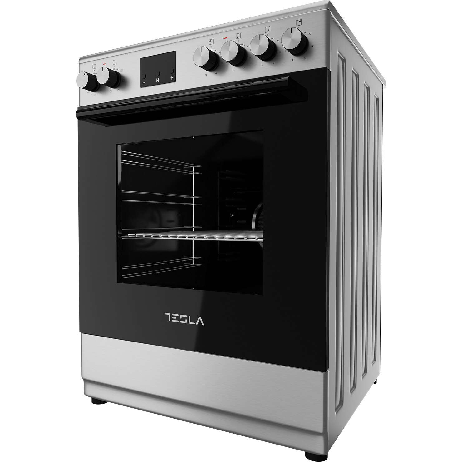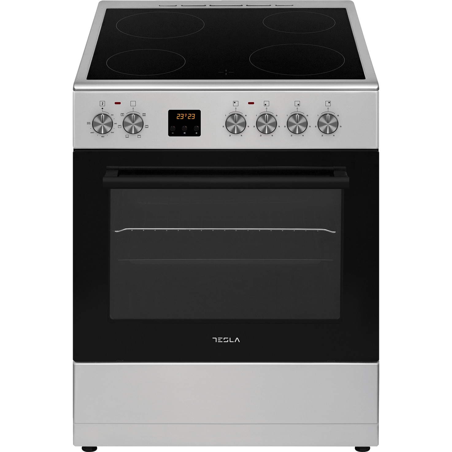 Tesla CV6400SX Kerámia főzőlapos szabadonálló sütő, 56L, 4 zónás, 6 funkció, inox