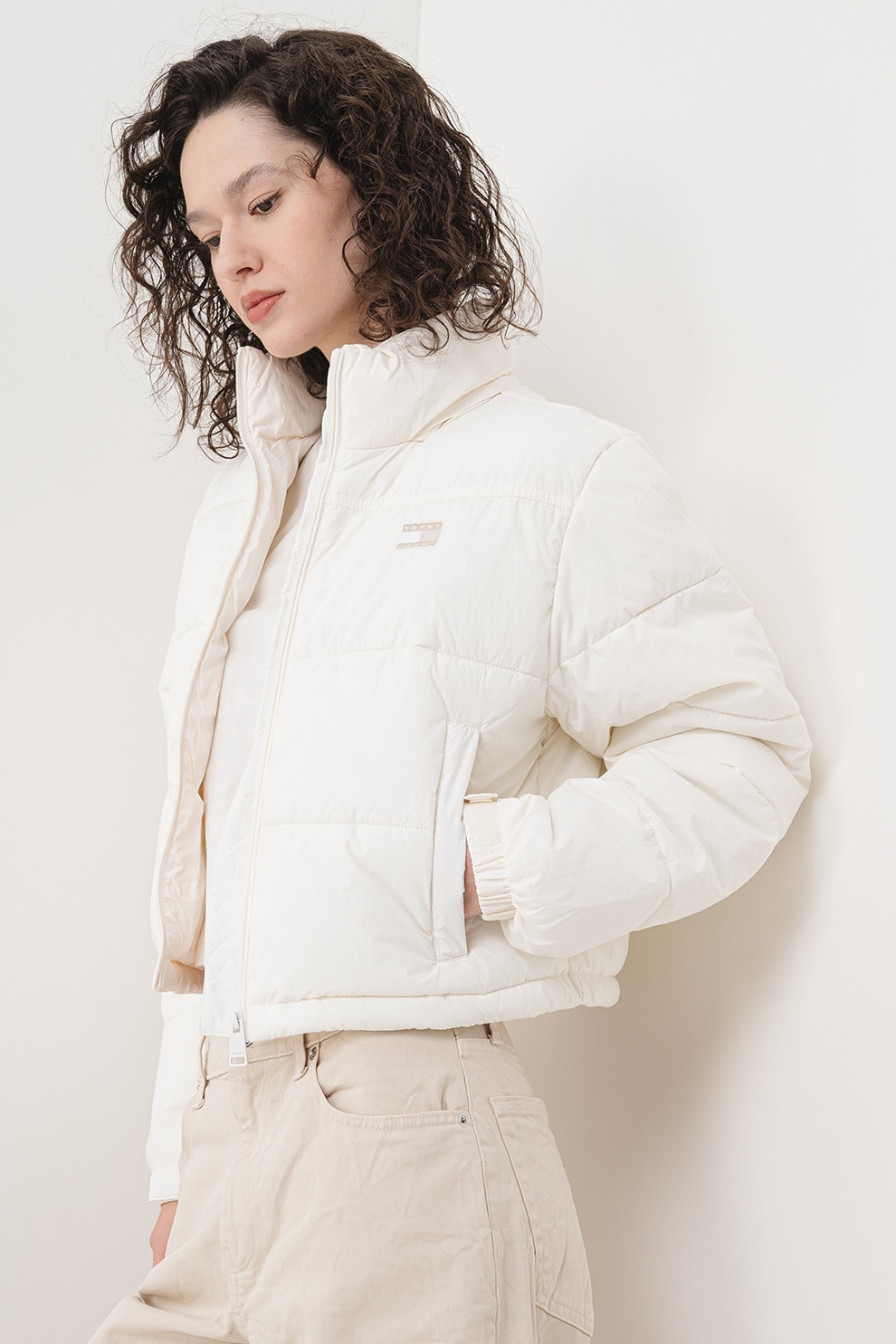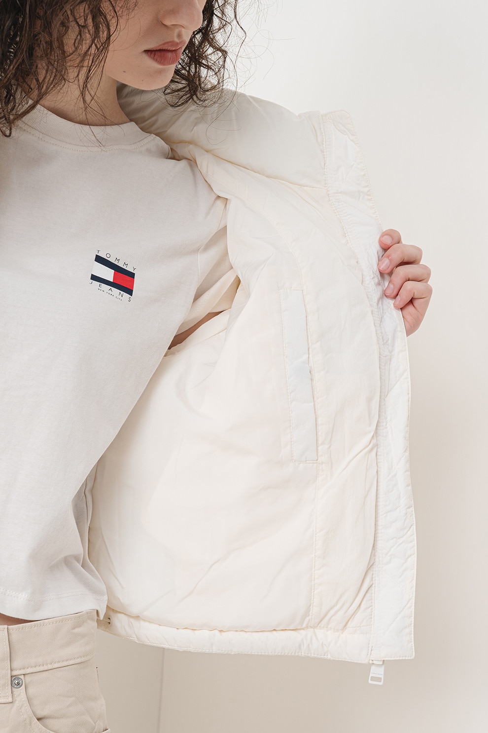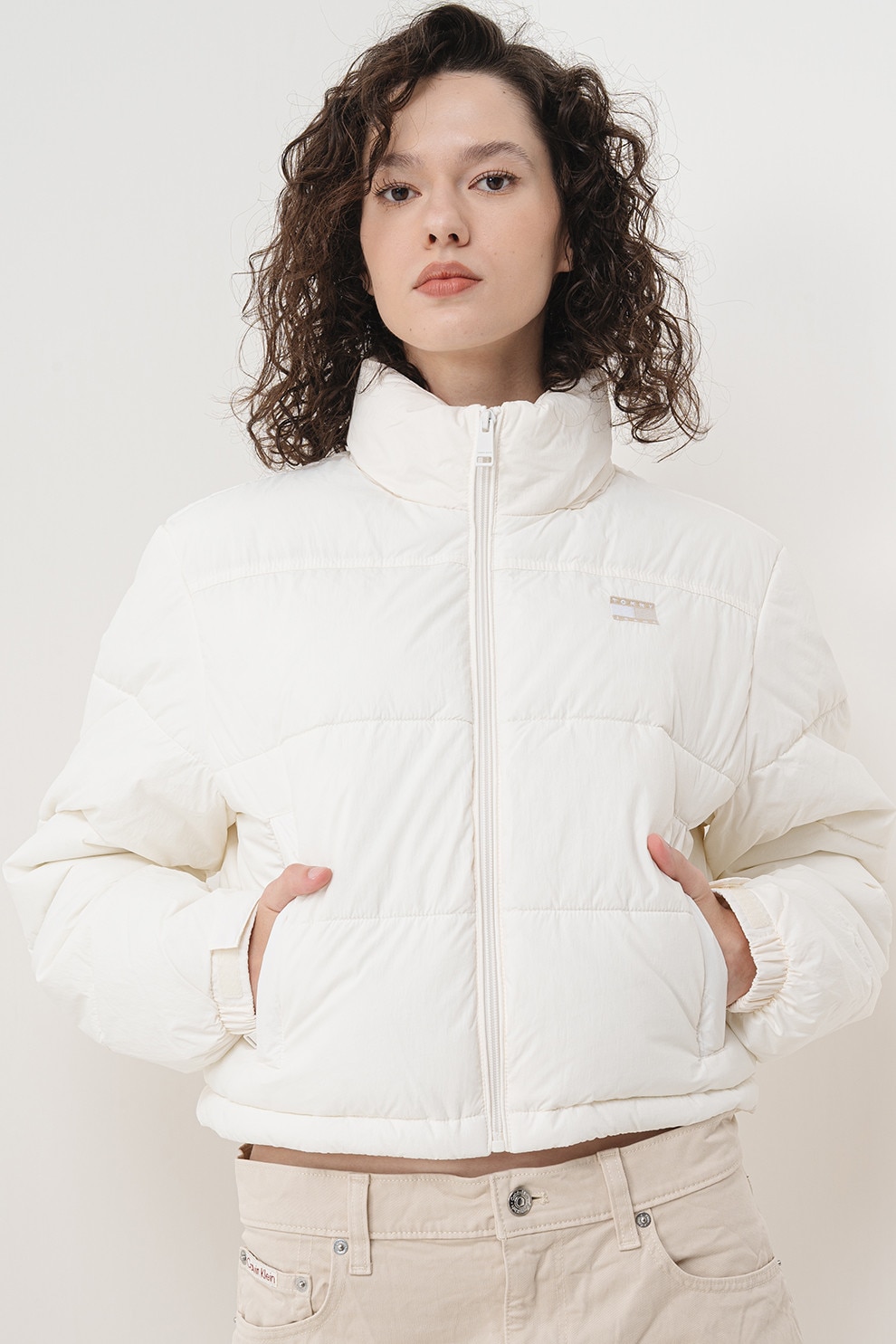 Tommy Jeans, Galléros crop pufidzseki, Csontszín
