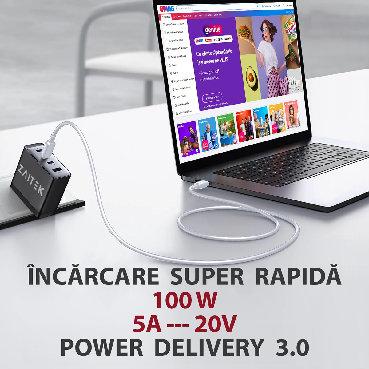 Lehetővé teszi akár 100 watt teljesítmény átvitelét az eszközök között. Ez a teljesítmény elegendő nagy teljesítményű eszközök, például laptopok, táblagépek, okostelefonok vagy egyéb szupergyors töltést igénylő eszközök gyors töltéséhez.